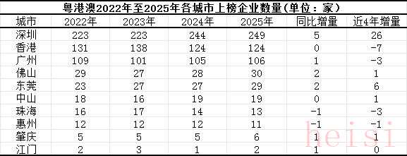 从城市维度看,深圳上榜企业的数量与合计品牌价值均第一,且较其他城市显著领先。从动态角度看,2022年至2025年,深圳上榜企业数量增长26家,合计品牌价值增长11752.39亿元,两项增量指标也均位列区域第一。