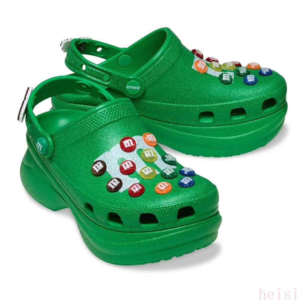 Classic Clog 鞋面满印放大版 M&M’S® 巧克力豆图案,鞋跟带缀有定制 Jibbitz™ 饰物。Bae Clog 则采用同色系绿色纹理设计,前掌印有「M」字样,搭配半透明糖豆造型配件。鞋款均采用环保 Croslite™ 材质,并推出限量版 7 件装 Spokescandy 主题饰物。