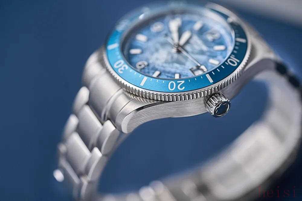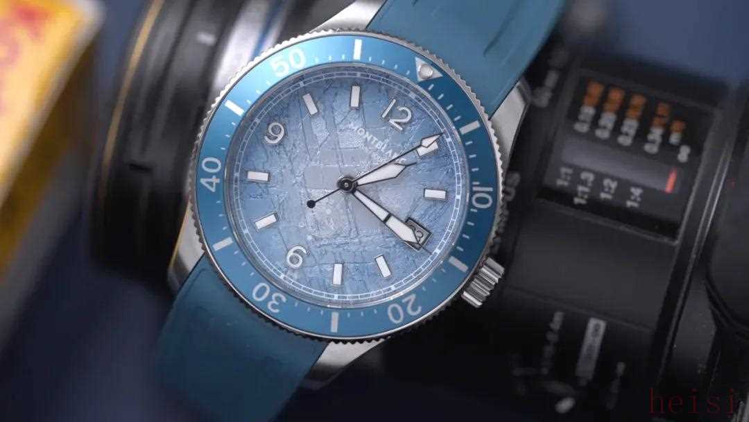 万宝龙的冰川系列,表如其名,盘面的设计采用了冰川独特的层次性纹理设计,一片片冰棱经过成千上万年的反复冲刷,错落的贴合在一起,形成了一种独特的视觉美感。虽然万宝龙的冰川系列有很多配色,但2024年发布的深蓝盘和2025年发布的冰蓝盘我认为是最具代表性的。