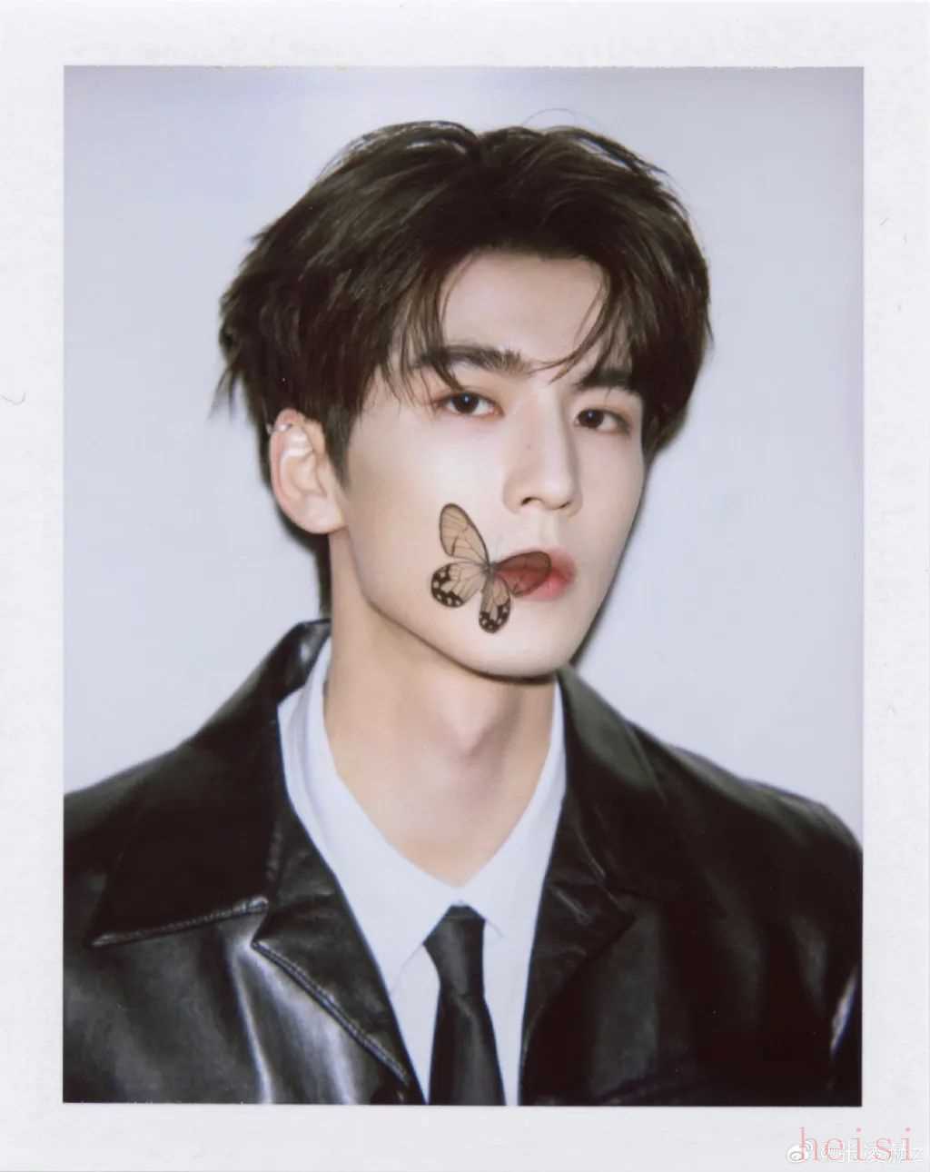张凌赫这张,以蝴蝶为配饰,搭配皮衣,颇有巧思。