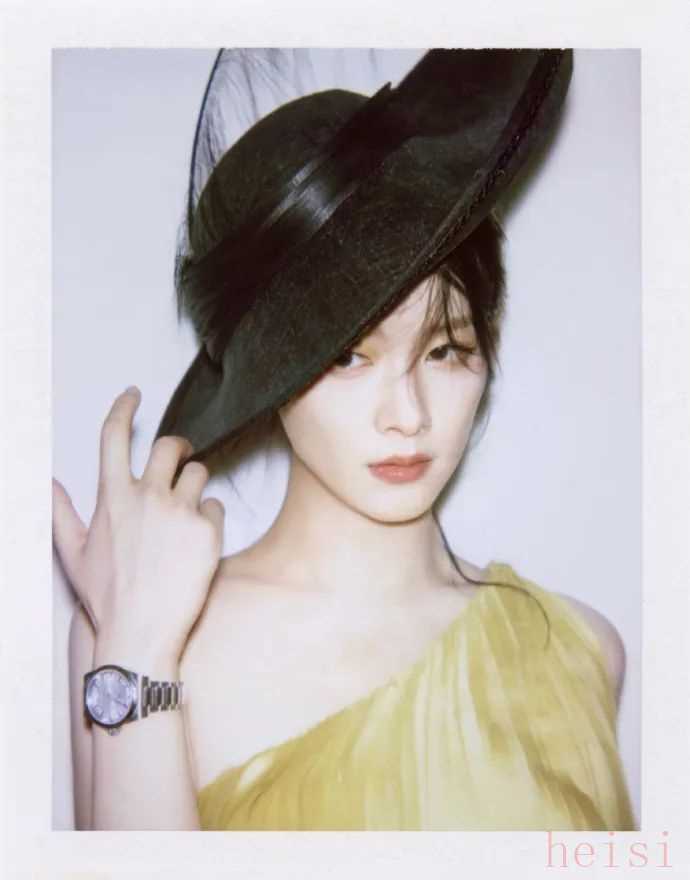 陈昊宇则以黑色帽子作为装饰,与黄色斜肩裙形成反差,冷脸御姐风,很带感。