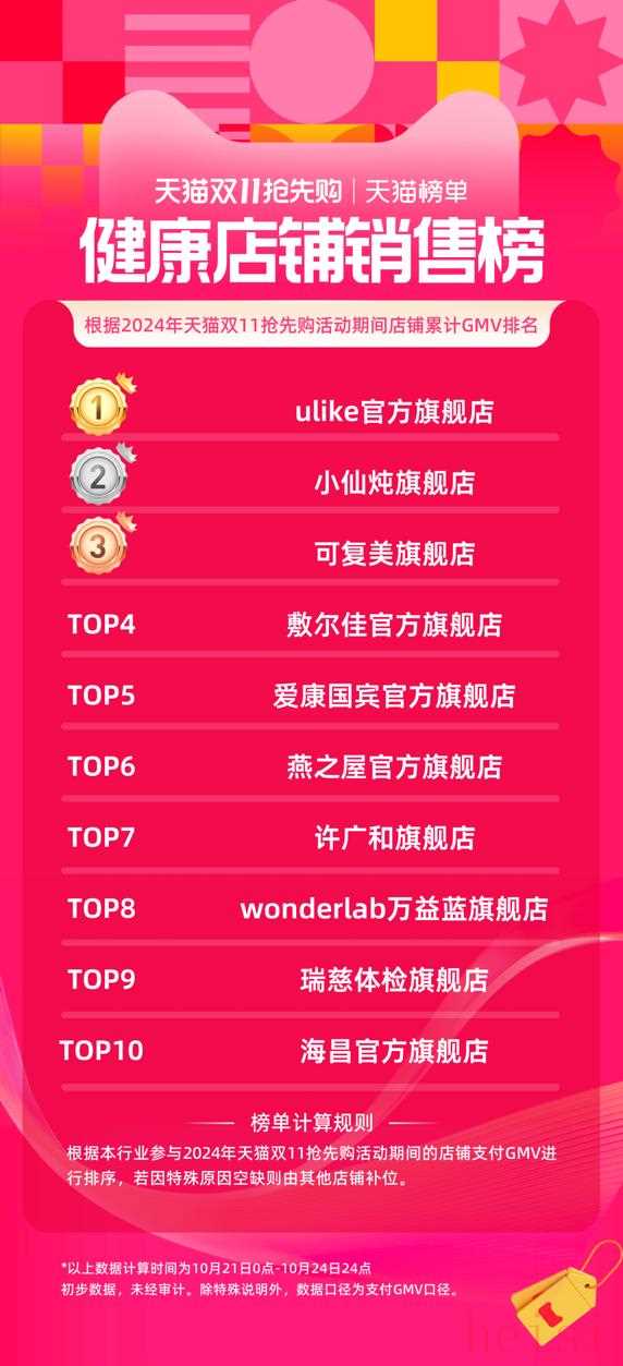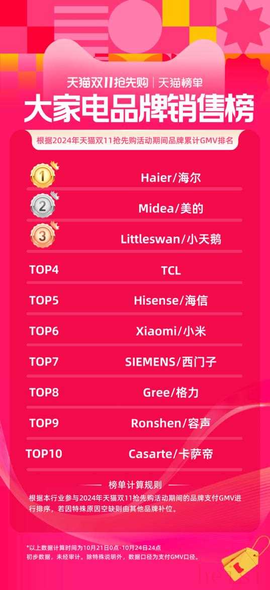 关于2024天猫双11第一波品牌成交排行榜,根据目前广泛报道和官方发布的信息: