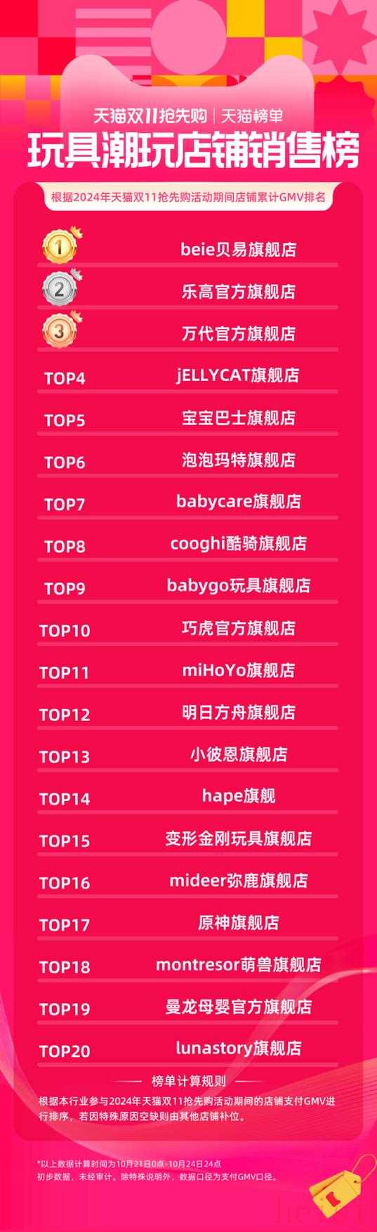 9、天猫双11第一波玩具潮玩店铺排行榜: