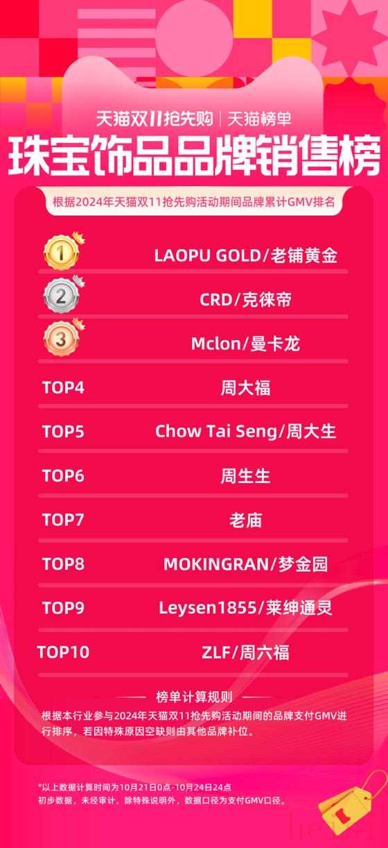 17、天猫双11第一波珠宝饰品品牌排行榜: