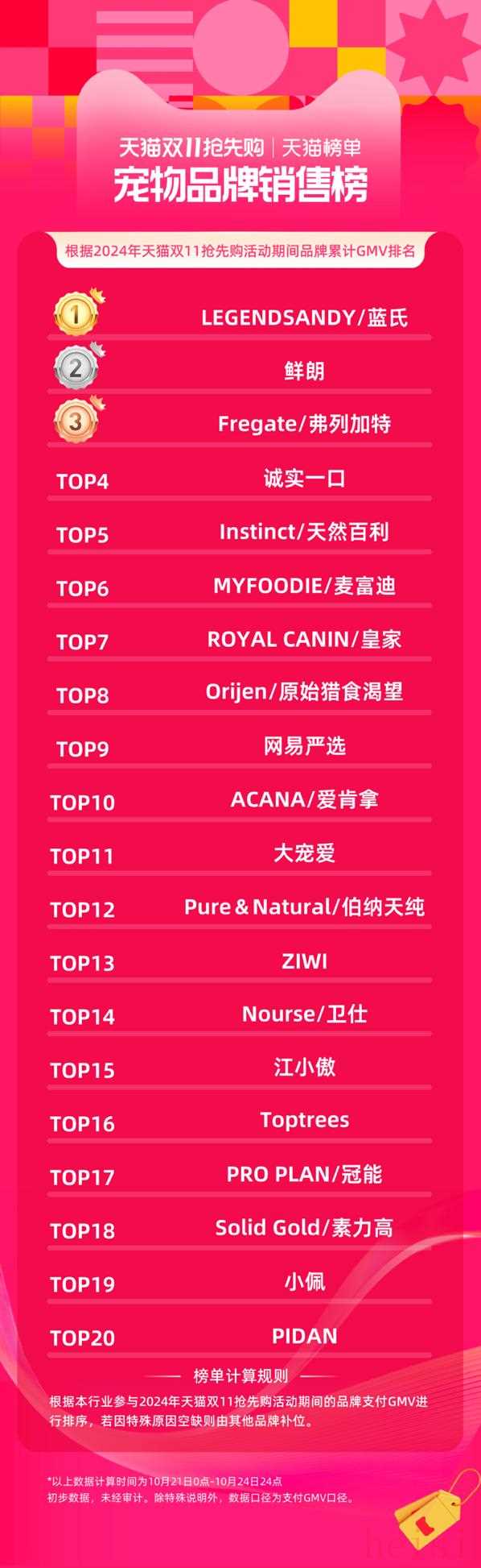 10月25日,2024年天猫双11第一阶段(10.21-10.24)品牌成交排行榜发布,快消、服饰、运动户外、家享生活、3C数码、玩具潮玩、健康、香氛香薰、宠物、食品、生鲜、汽车、文教、企业服务、珠宝饰品等行业的领跑品牌、商家出炉。