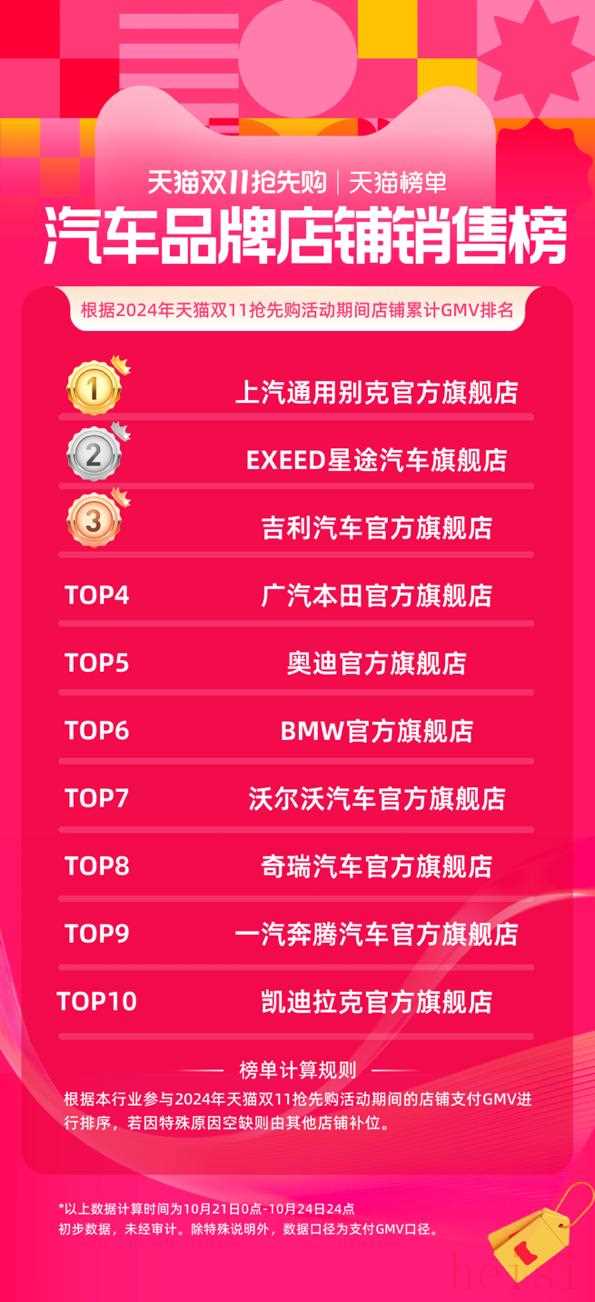 15、天猫双11第一波汽车品牌店铺排行榜: