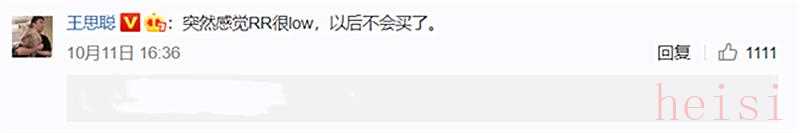 就连娱乐圈著名的“纪检委”王思聪都出面发声说:“突然感觉RR很low,以后不会买了。”