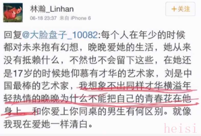 还顺便为晚晚洗白,大有“她只是爱上了才华横溢的艺术家,这有什么错”之意!