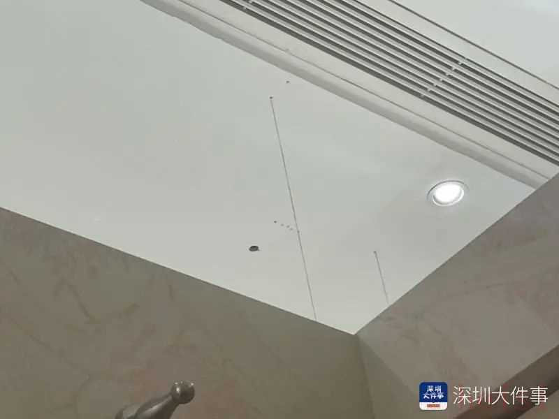 记者在现场看到天花板上钉子拆除的痕迹,疑似为安装摄像头位置。