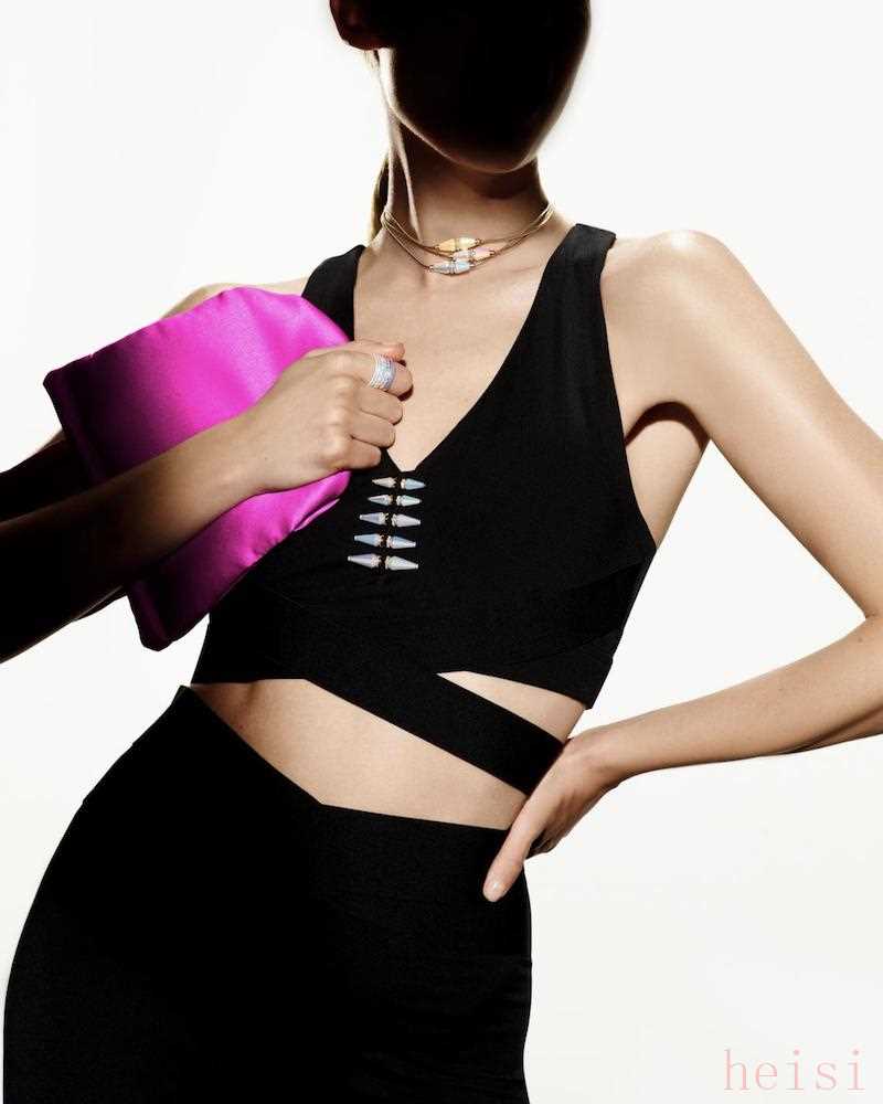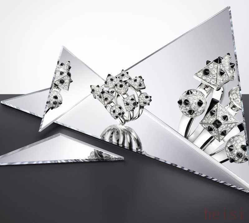 在卡地亚与2021年末推出的全新Clash limited系列中,设计师通过利落有致的几何线条与放大夸张的立体造型,展现对立碰撞下的无限张力,营造冲突美感。突出的铆钉元素成为珠宝系列的焦点:尺寸夸张、姿态傲然,黑白配色的大胆使用更具张扬个性。