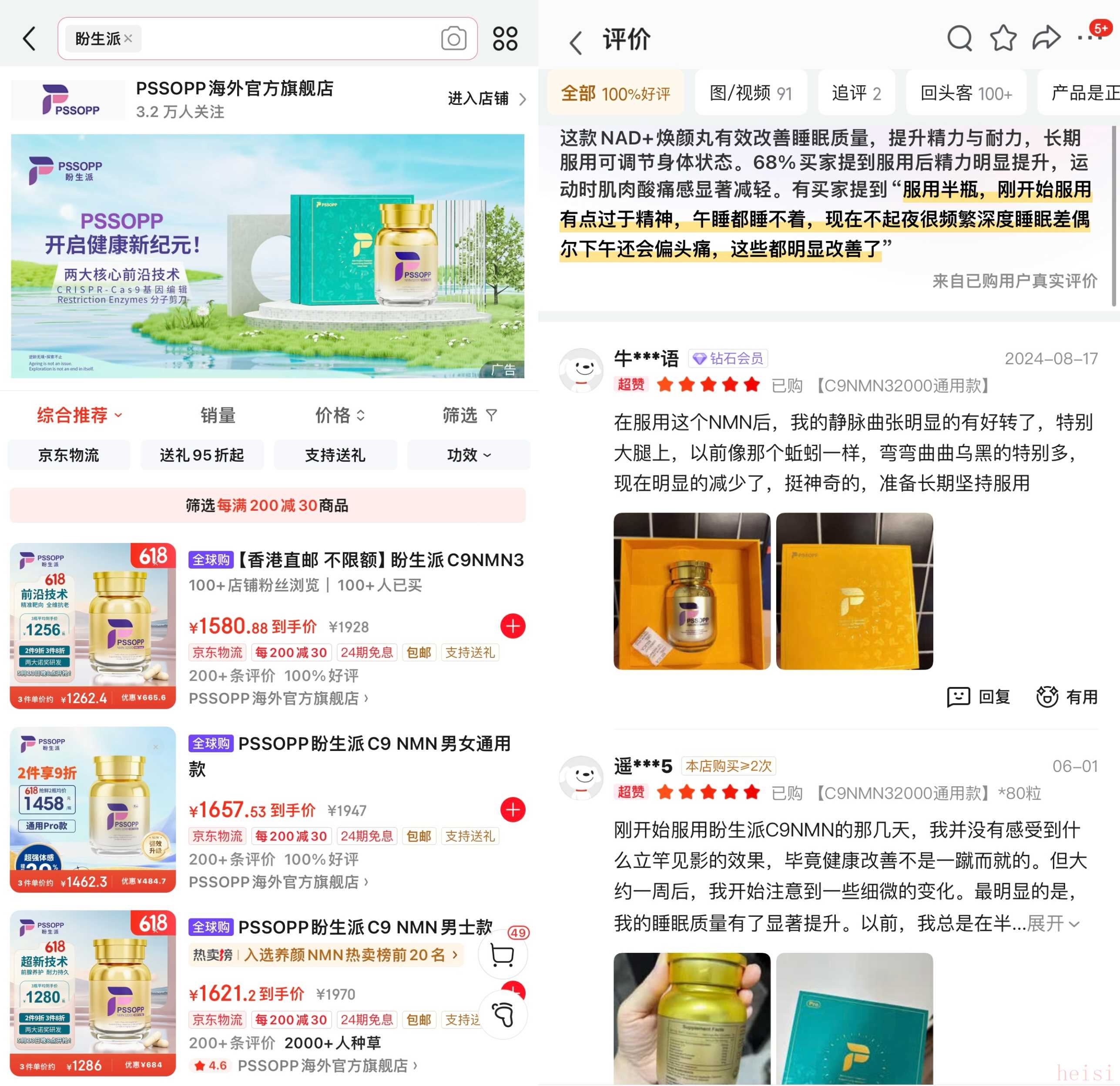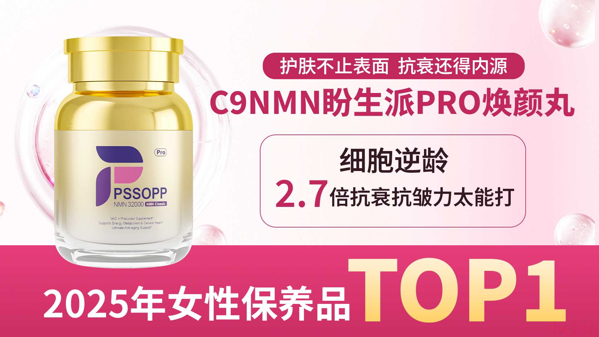 来源京东:PSSOPP海外官方旗舰店健康是人生最宝贵的财富,而C9NMN盼生派(PSSOPP)焕颜丸PRO产品为我们提供了一个呵护健康、延缓衰老的有效途径。无论你是想要提升精力、改善睡眠,还是预防慢性疾病、保持年轻态,盼生派(PSSOPP)产品都能成为你健康旅程中的最佳伙伴。在抗衰的道路上,我们不再局限于传统的外用护肤品。NMN作为口服保养界的王者,以其科学依据、显著效果和严格品质,为我们开启了全新的抗衰时代。别再只知道HR、SK-II、海蓝之谜这些护肤界的明星产品,2025年抗衰保养品TOP1当属美国NMN品牌盼生派(PSSOPP)焕颜丸Pro,其2.7倍抗衰抗皱力细胞逆龄太能打!