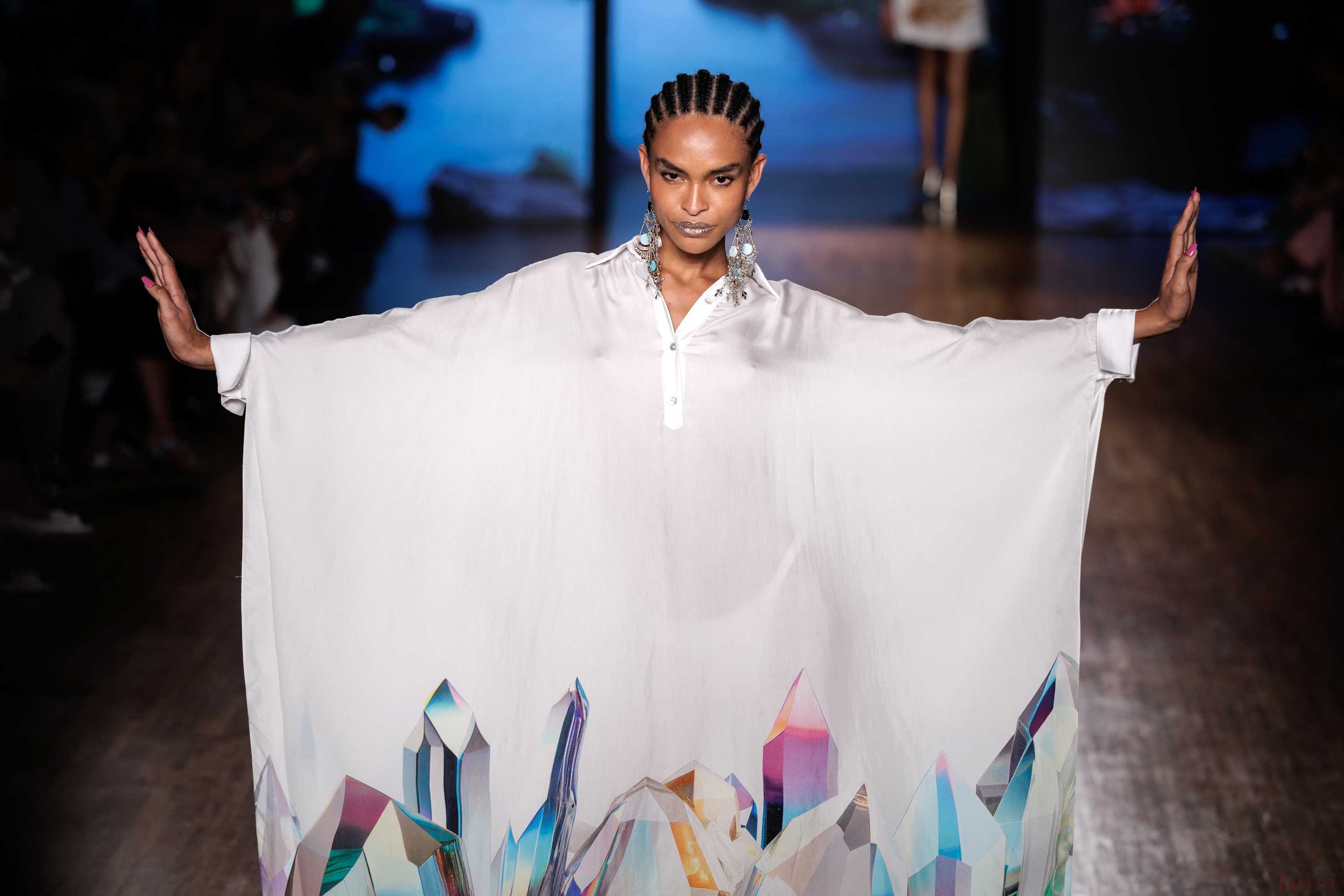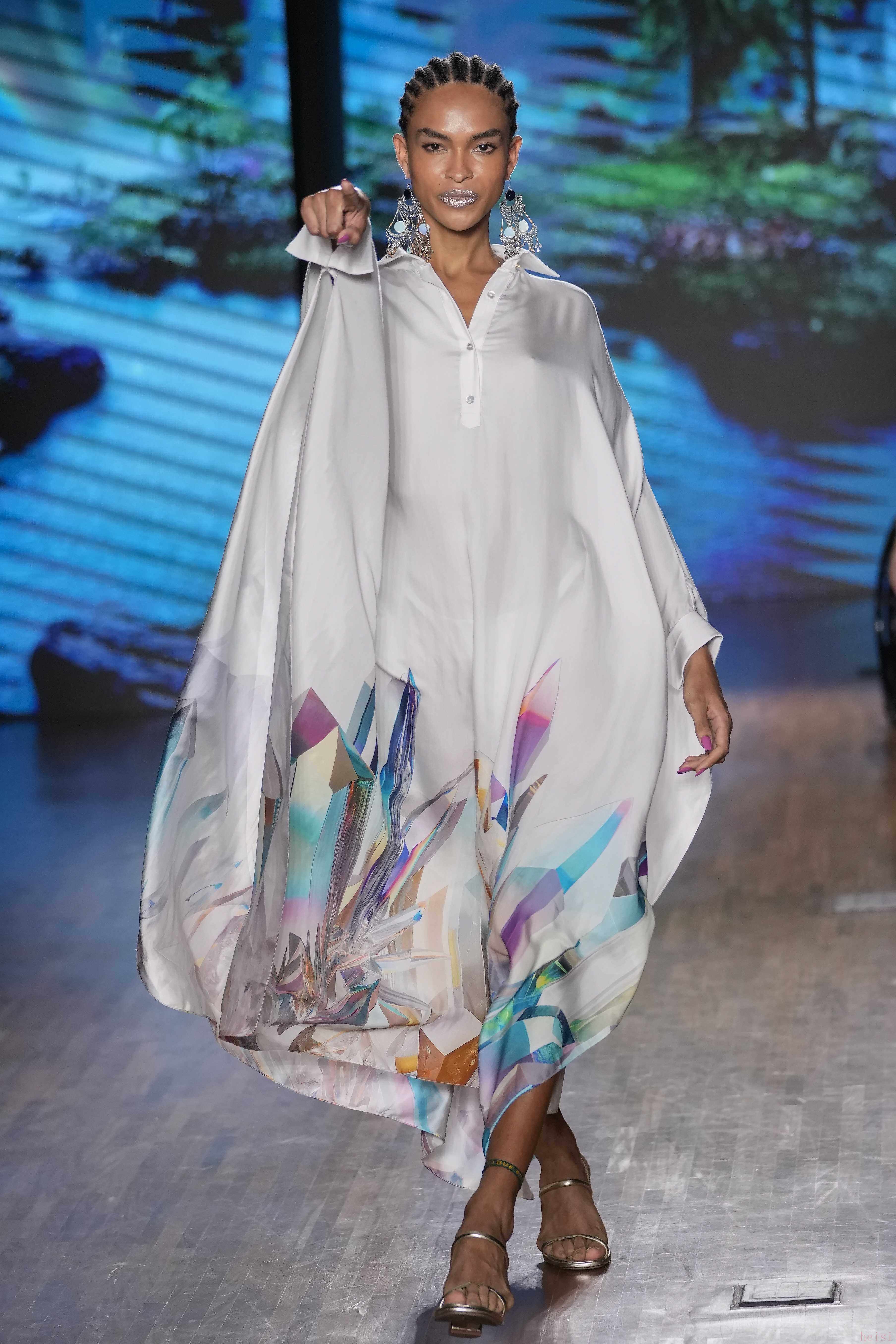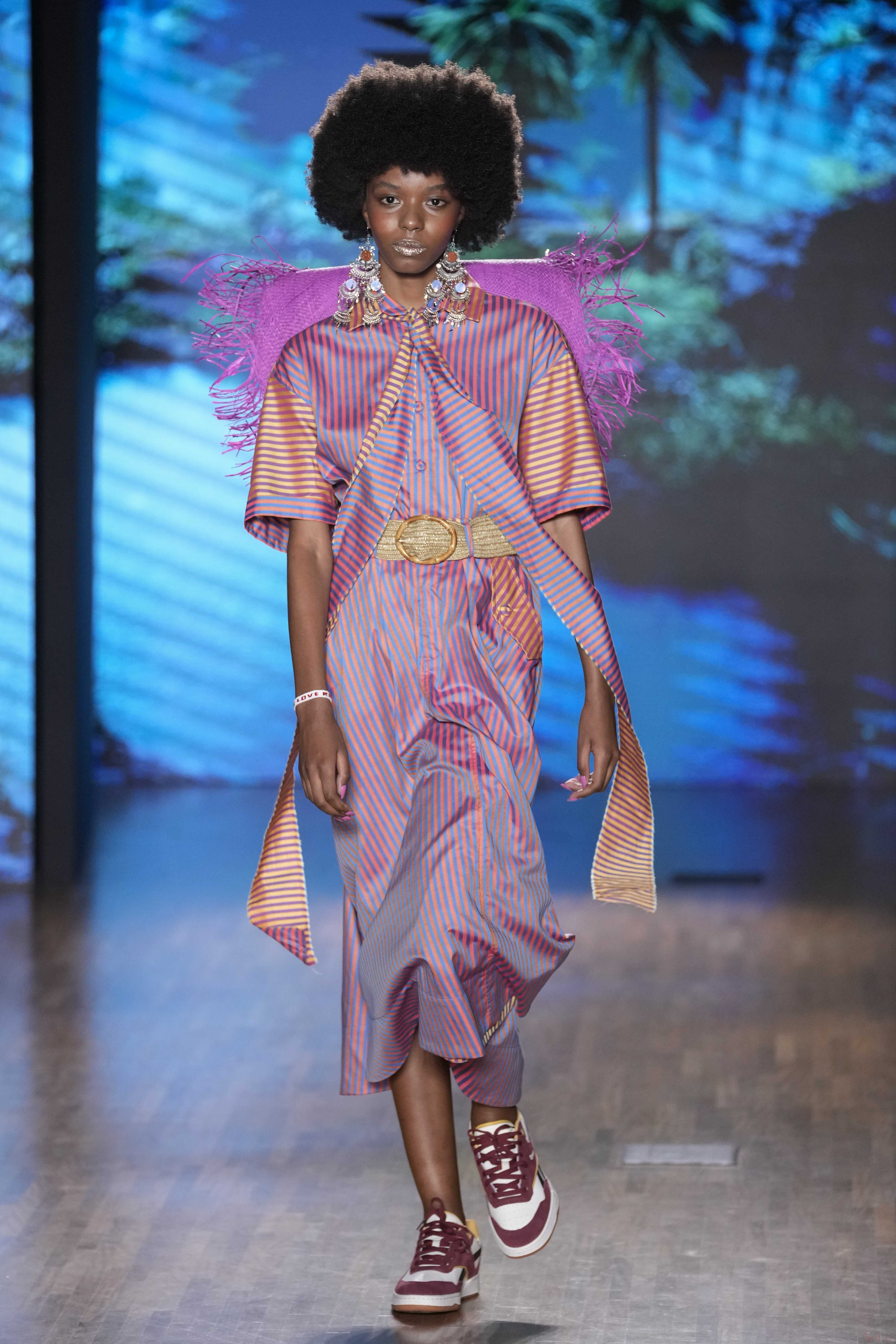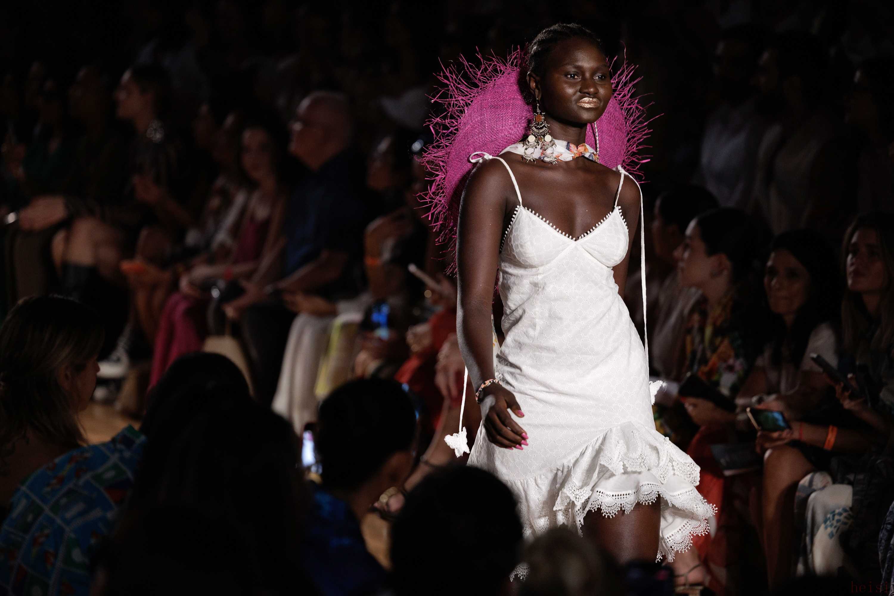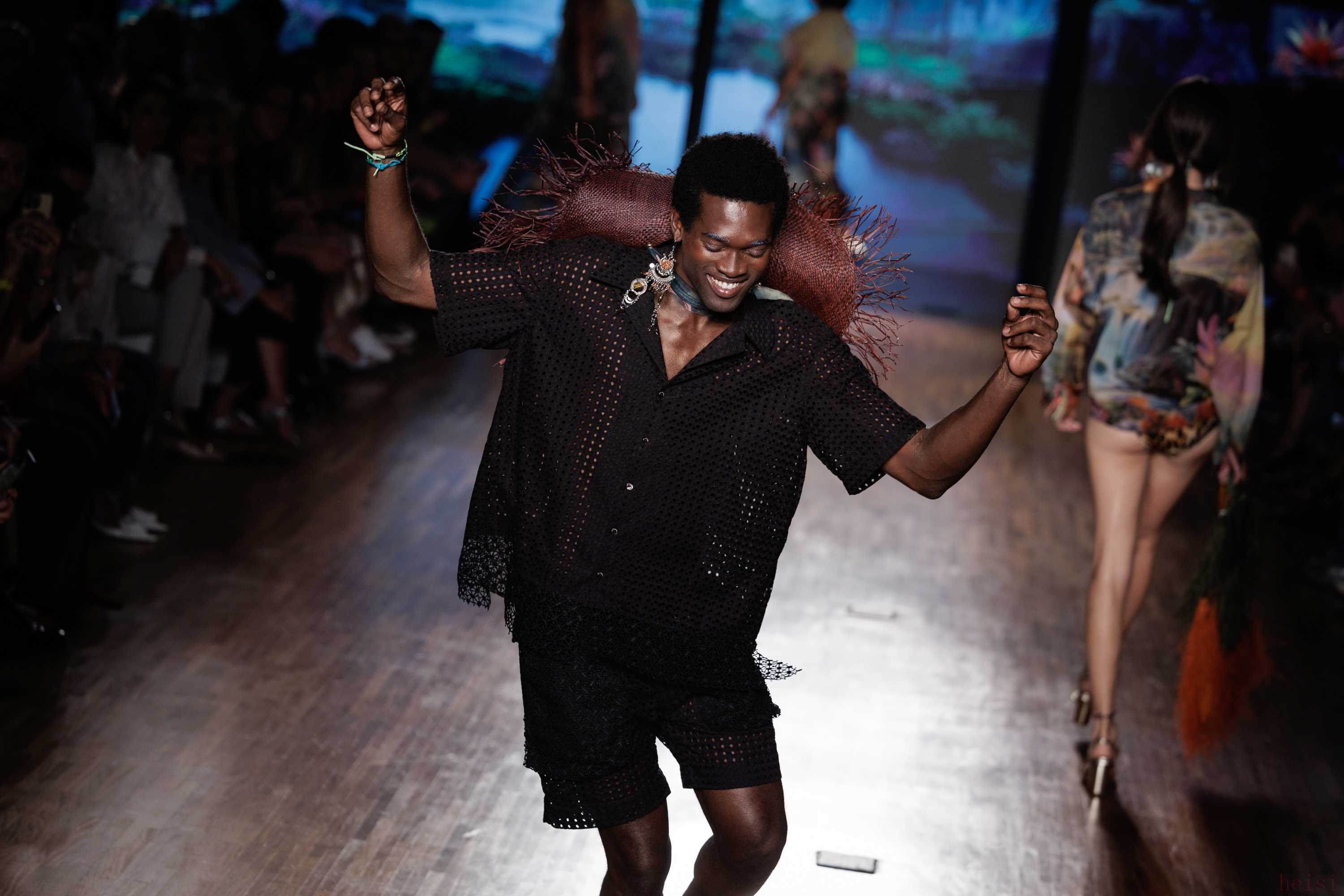 2. "设计主题与灵感:" 本次秀场似乎围绕“" Paradise(天堂)"”这一品牌名称展开,但具体诠释可能侧重于一种理想化的、带有迷幻或乌托邦色彩的世界观。设计上可能融合了巴西的自然风光(如热带色彩、植物图案)、都市街头景象以及复古影像的灵感,营造出一种既梦幻又具在地感的氛围。