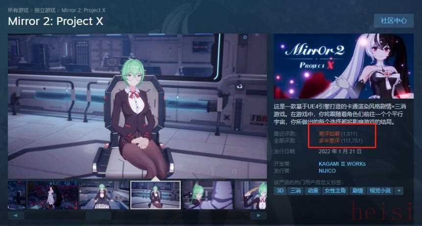后面发生的事就如我们所知晓的一样,再次换皮的发行商 NIJICO带着《Mirror 2》走上的台面,如今无条件退款和突然解散的“骚操作”看起来有点过分似曾相识。也许再过一段时间,打着国产黄油旗号的新公司再次“秽土转生”,我都一点都不感到奇怪,而隔壁锁区的《mirror》依旧可以大摇大摆的疯狂捞钱。