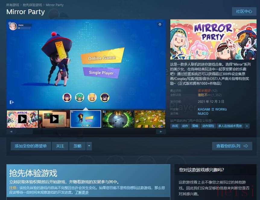 之后,官方还重点强调“破圈的知名度带来了大麻烦,我们持续收到有关部门的警告,不断有匿名举报称我们违法经营”。有没有可能,你们的上一代产品就早早破圈了?没错,就是顶着这样的“巨大压力”,在2018年发售的《Mirror》不仅运营到了2022年才锁区(是的,都这样了他们都没下架),甚至在此期间,还陆续发售了3个DLC,以及2款IP衍生游戏,顺带提一句,其中2021年发售的《Mirror Party》仍然还处于EA状态。