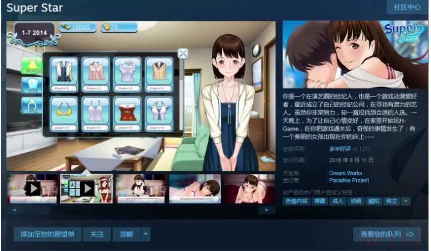 最早借着《宠物小精灵》换皮手游捞到第一桶金的“蓝航科技”,创办了“爱相随”网游公司,早先专注于恋爱养成领域的手游开发,然而由于手游市场的竞争惨烈,爱相随将主攻方向转向了单机和黄油,随后改头换面变成了“Sakura Game”,同时在Steam平台推出了第一款黄油《Superstar》。
