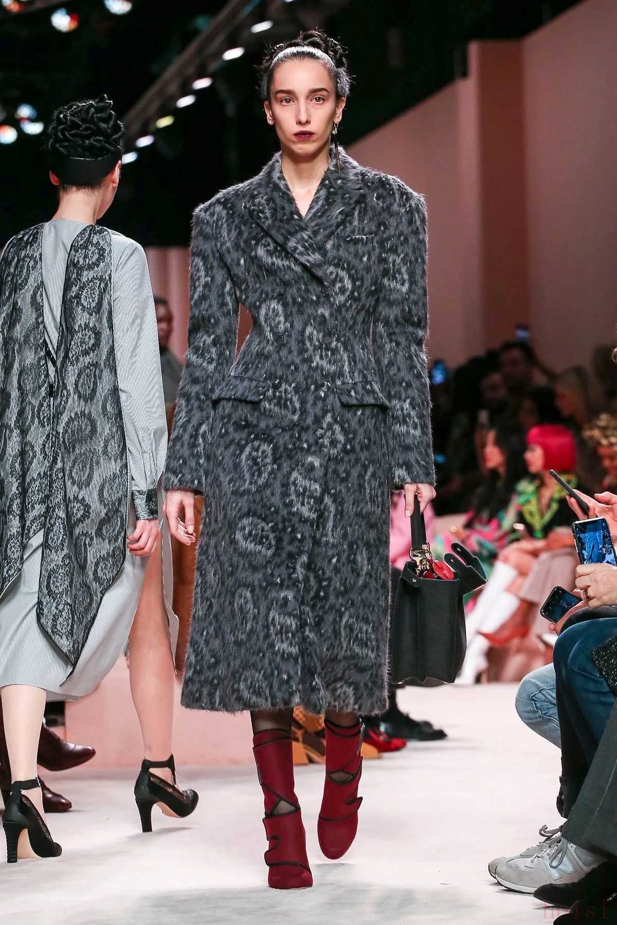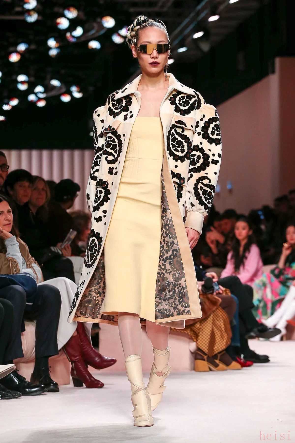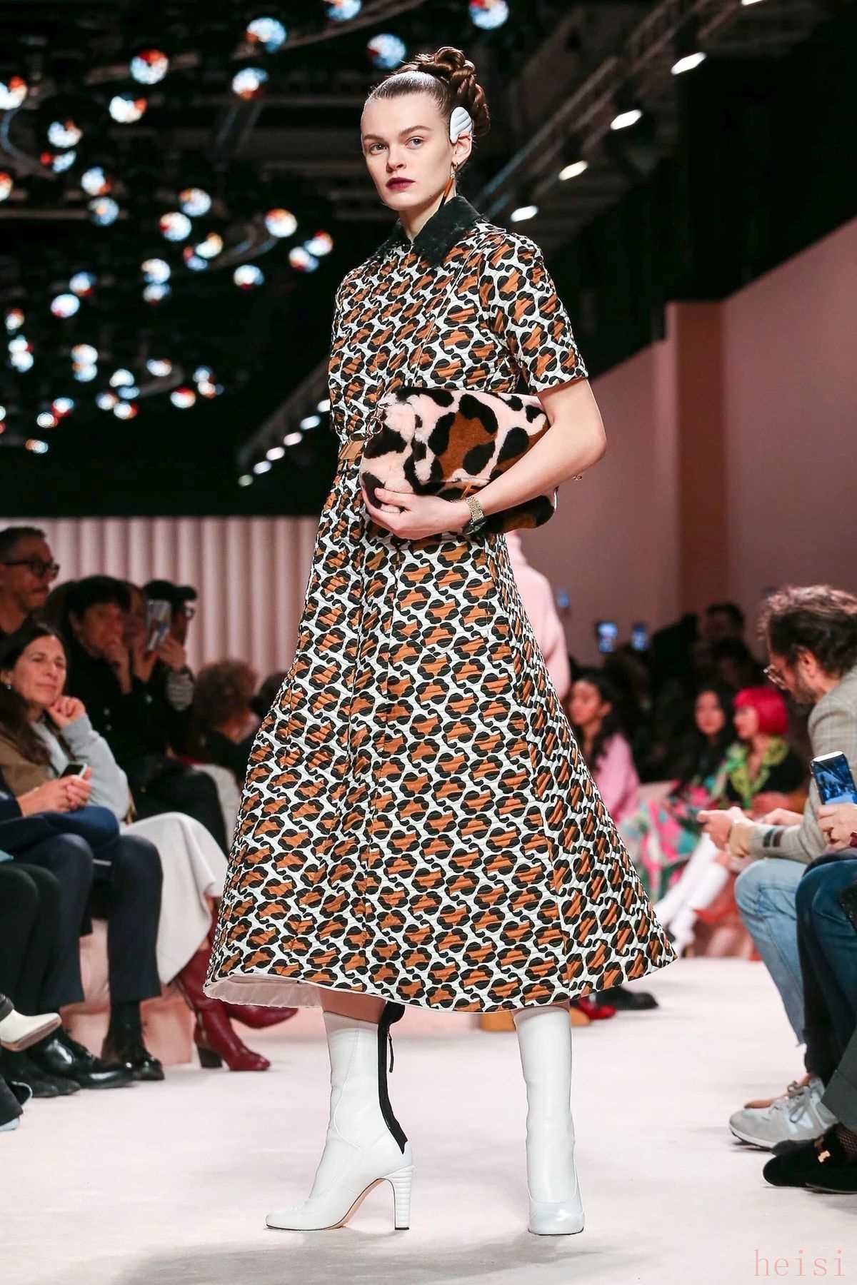 本季令人出乎意料的是,Silvia完全放手了FENDI的双F老花,而是在本季重温了经典动物纹元素,豹纹图案被用于绒面羊毛和镶嵌工艺皮草中,令我们被她打破重塑的技能再次惊艳。数码的排列和如同佩斯利花纹、爱沙尼亚刺绣般的印花,又是一番老花新开。