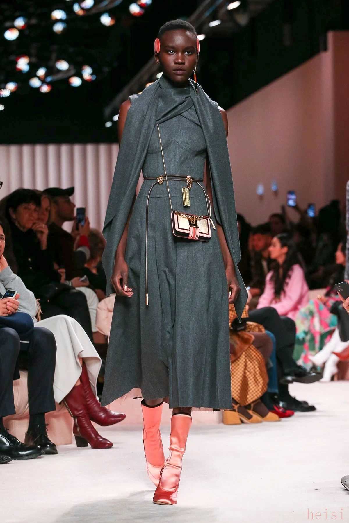 关于FENDI这个“闺阁“的主题总有点叫人半知未解,其实Silvia Venturini早已在配饰中埋下伏笔,那些羊皮衬垫的“吊带”靴和缎面“吊袜”高跟鞋突显出吸血鬼般的魅惑气质,它们本按耐在女性内心深处,现在全然公之于众,Silvia似乎在唤醒每个女性与身俱来的性感,它也是一种力量本身。