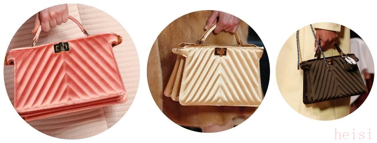 FENDI把本季主打的斜纹绗缝工艺也拿去给手袋用了,再加上丝绸面料的配方,这只提炼出历史厚重感的小Peekaboo长了一副很好卖的样子。