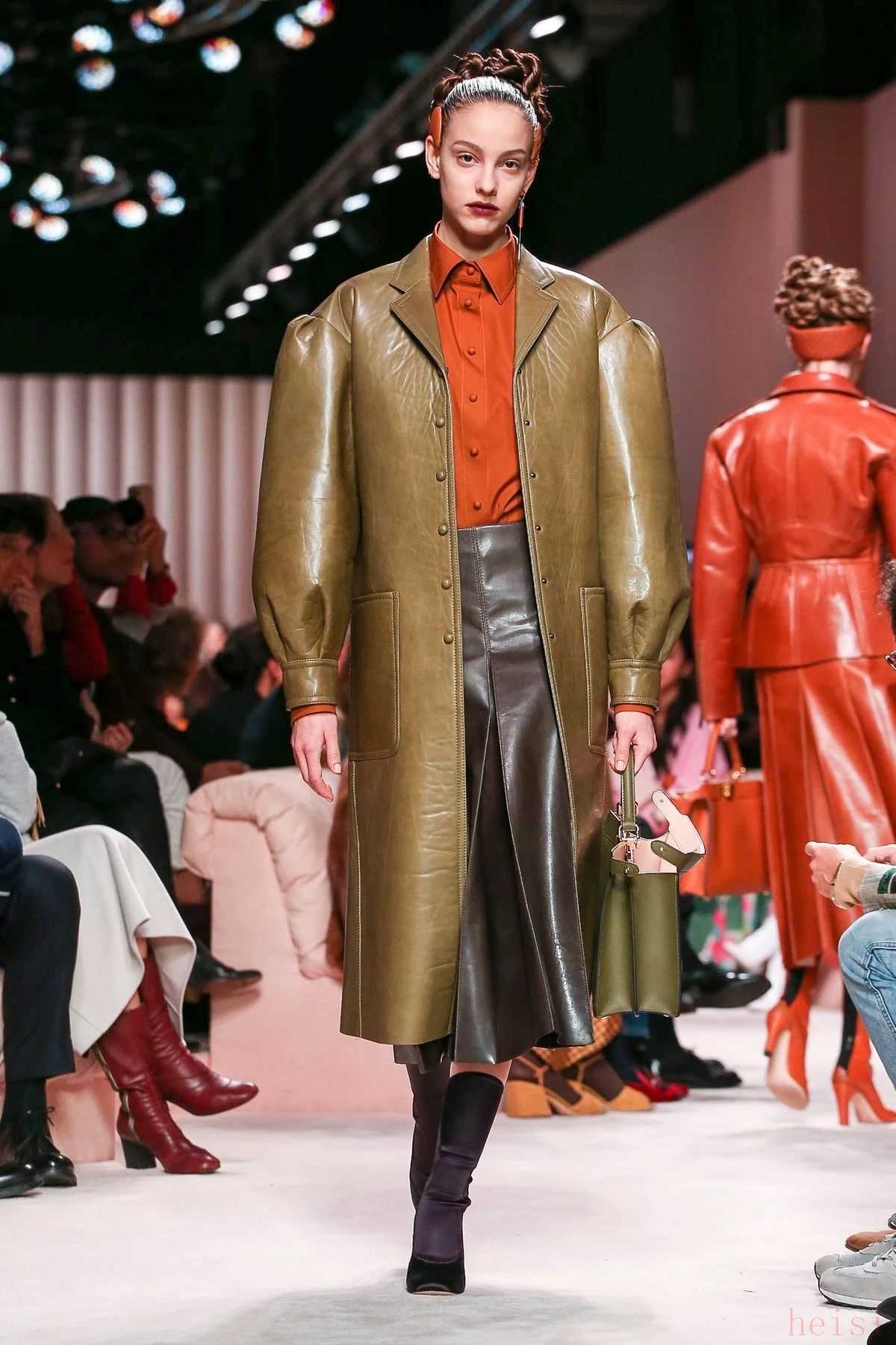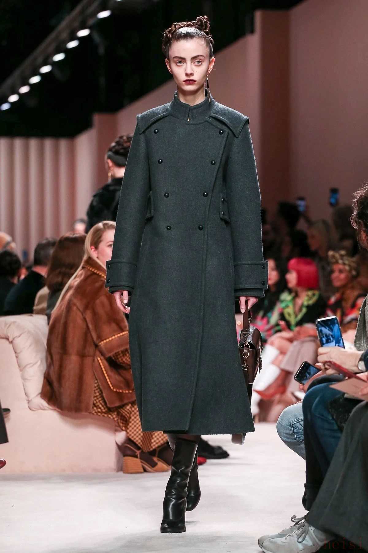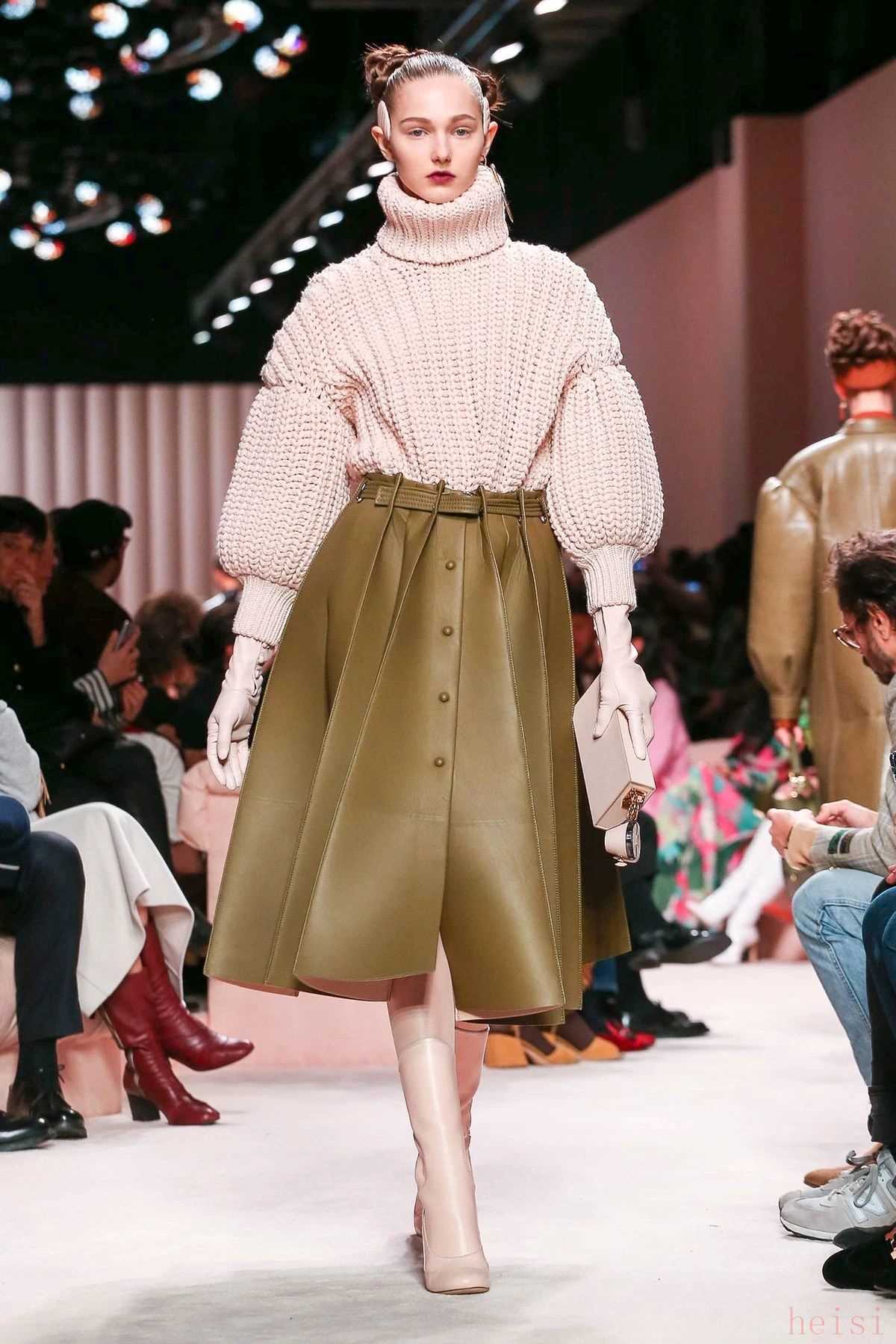 对比这些喘息之间的性感撩人的是Silvia Venturini矜持克制的军装外套、皮夹克、修身的皮褶裙等,这便是FENDI本季要表达的完整主题,从闺阁到会议室,女性在不同场合切换不同的人格,从容自如应对任何局面才是完整女性的全貌。