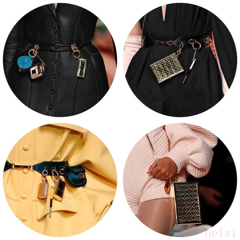 而这一季配饰最重的戏份来自于最新推出的“科技珠宝“系列,由Charlotte Stockdale和Katie Lyall设计的伦敦配饰品牌Chaos和FENDI合作打造。最想让人放血的应该就是一组挂在腰间的迷你装备:从金色网纱编织手机袋,到FF孔饰珠宝盒,再到智能耳机外壳和智能手表钥匙链,为电子设备放血的一天,终于还是到来了。