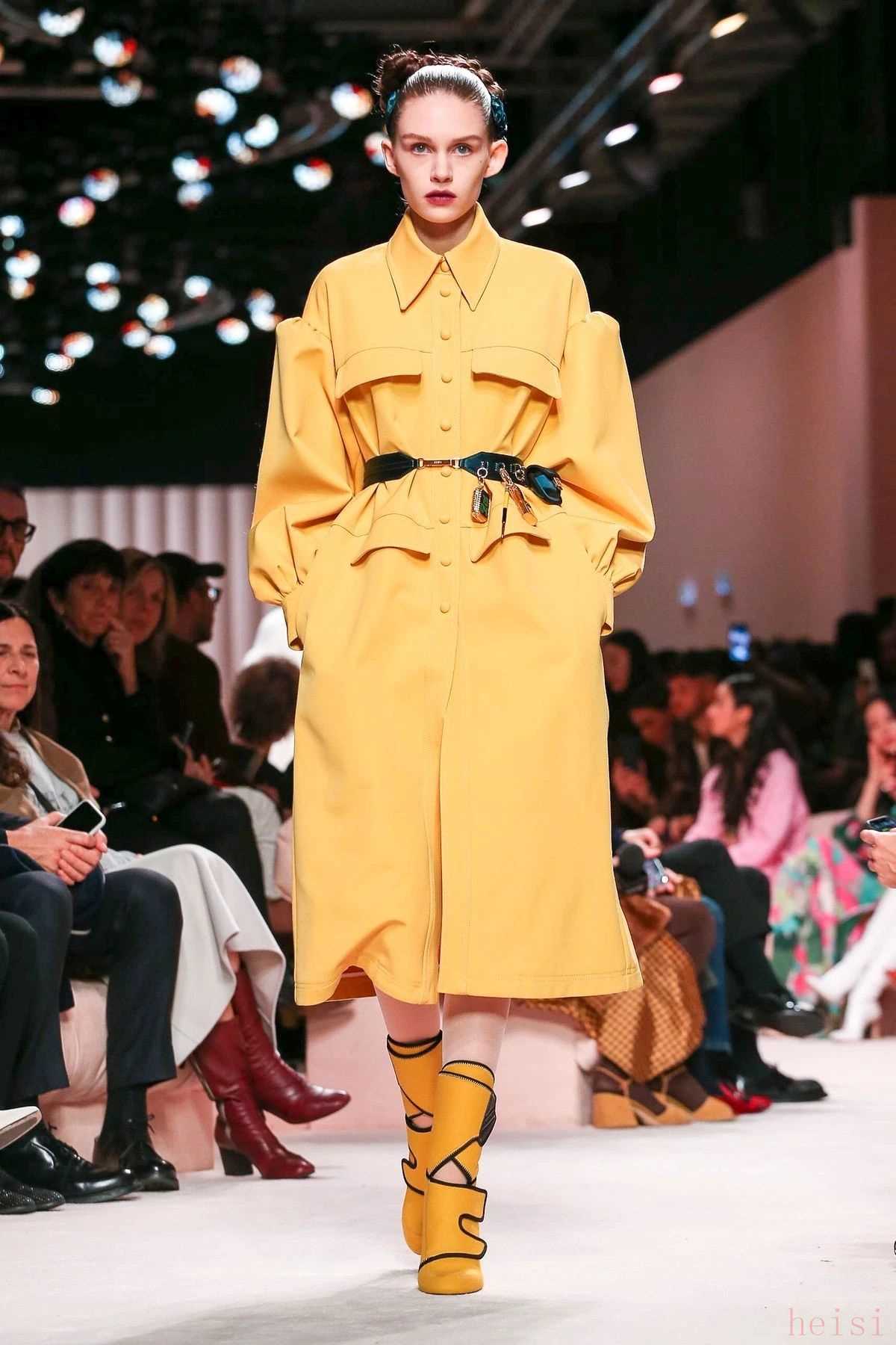 无论男人女人,生而为人必然有不同且复杂的人性,一味强调强势的人格试图占据上风都会偏颇。Silvia用时装颠覆了这些不休的争执,用“温柔的力量”这一充满情绪感和仪式感的女性表达为我们带路。这一季FENDI的概念对立而又统一,光滑混凝土的灰色和温暖的中性色调与淡雅彩色和明媚FENDI黄完美碰撞,构成了颜色和质地的鲜明对比。