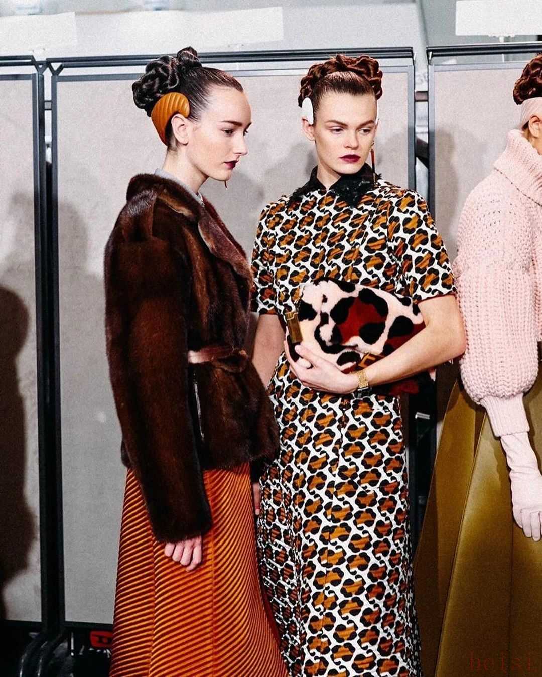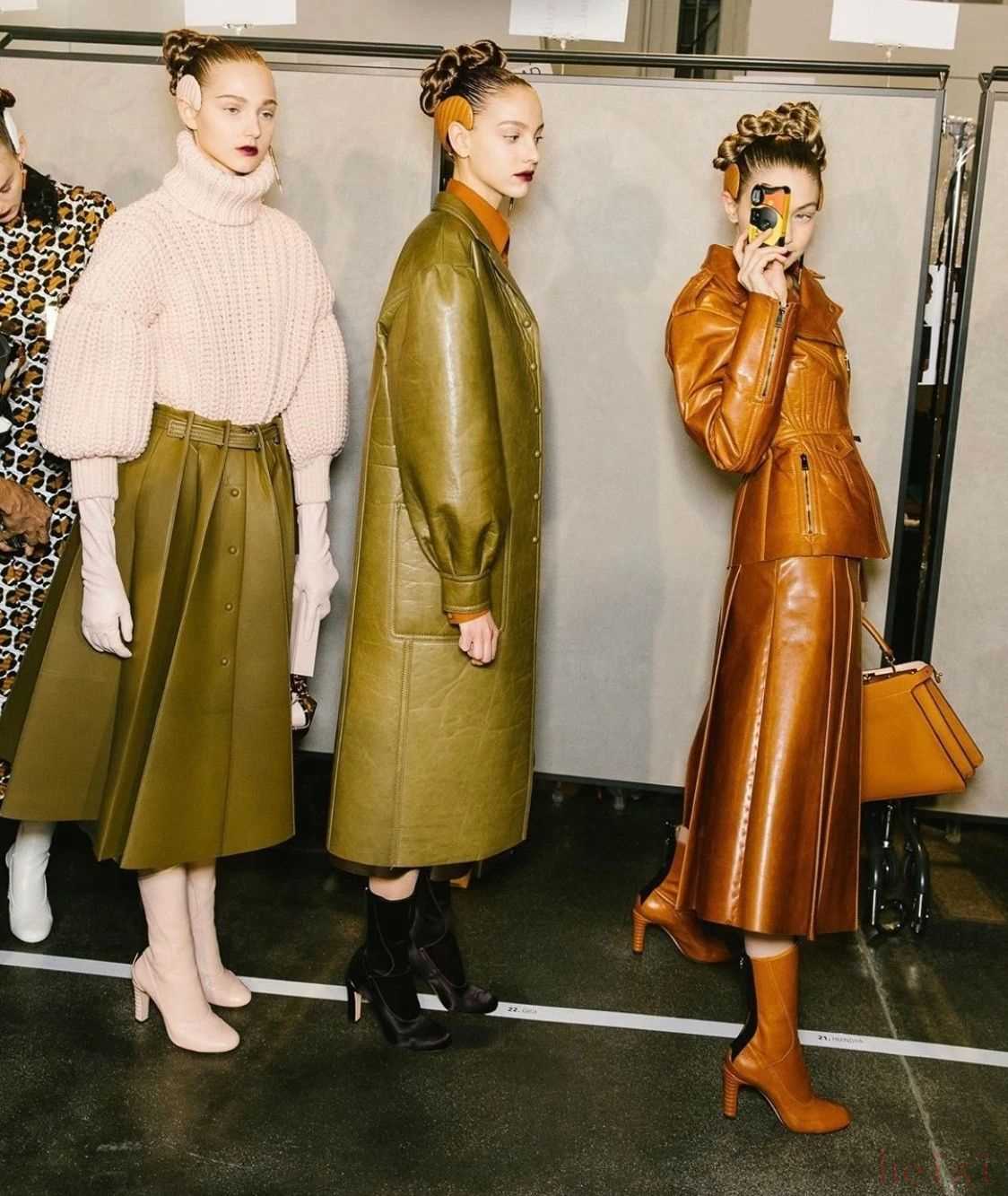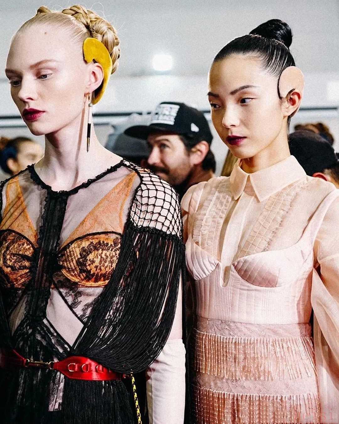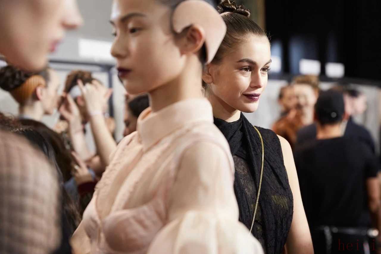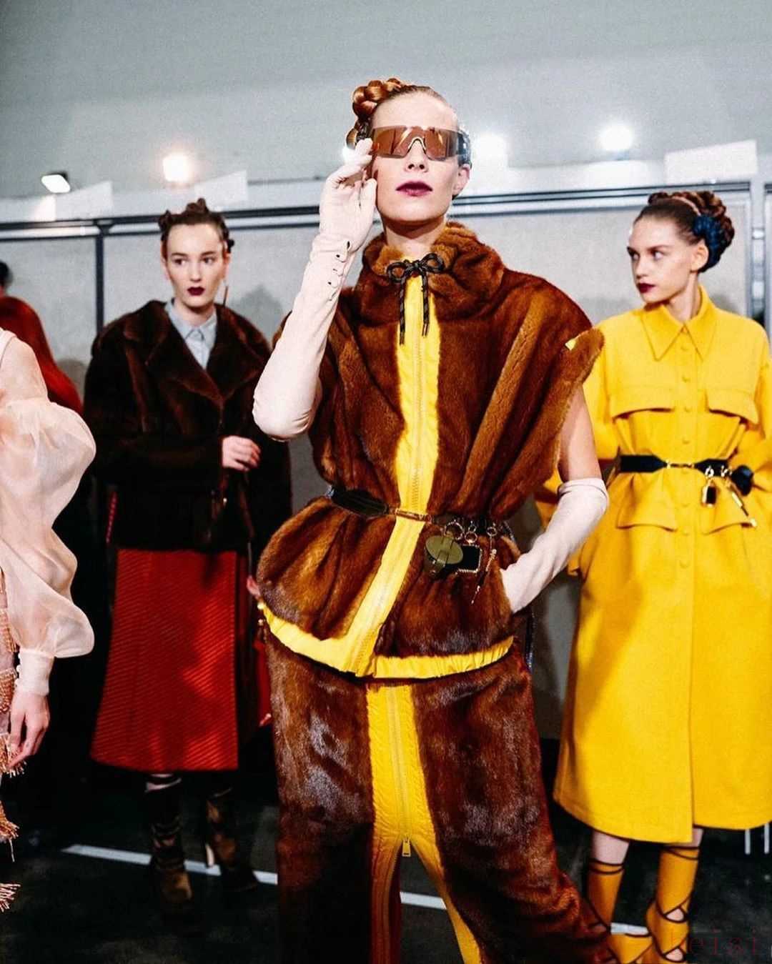 在FENDI的后台,穿戴整齐的模特们简直是大型“戏精”现场,每一帧都像电影现场。