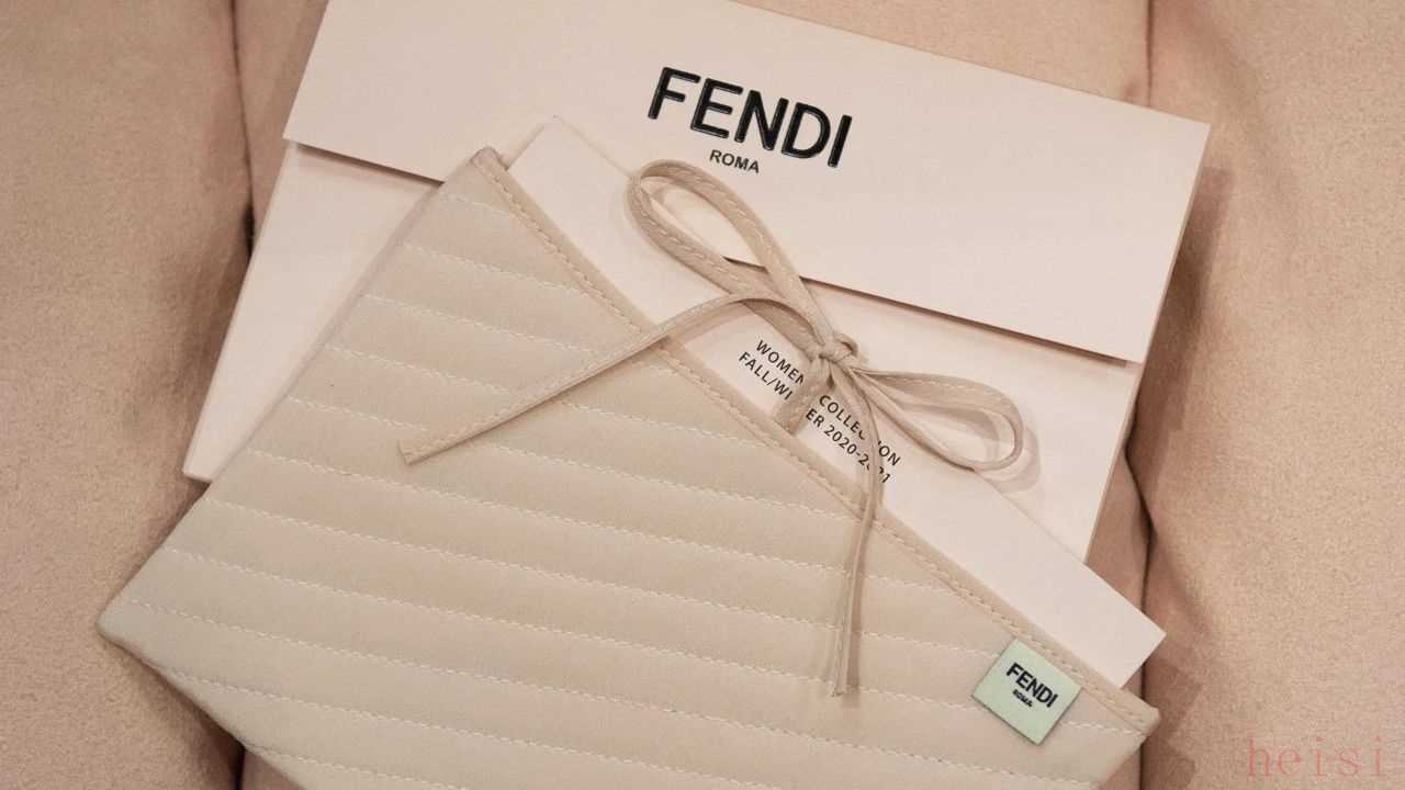FENDI本次的函被装在斜纹走线的绗缝袋里,还有细细的绑带,秀结束后可以直接放在包里当内层了。