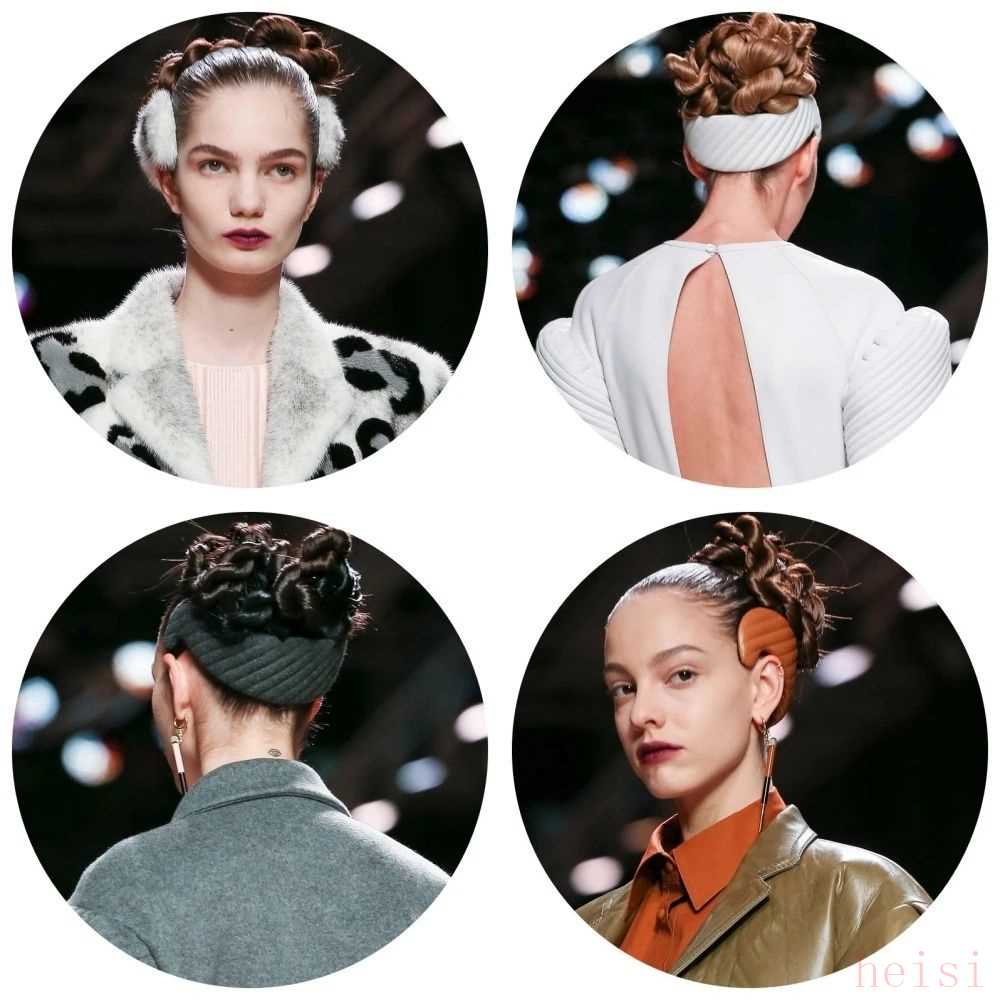 整场秀模特们悬挂在耳朵上佩戴的头饰,结合复古发带式的创意,这种超现实主义的未来复古感实在是爱了。