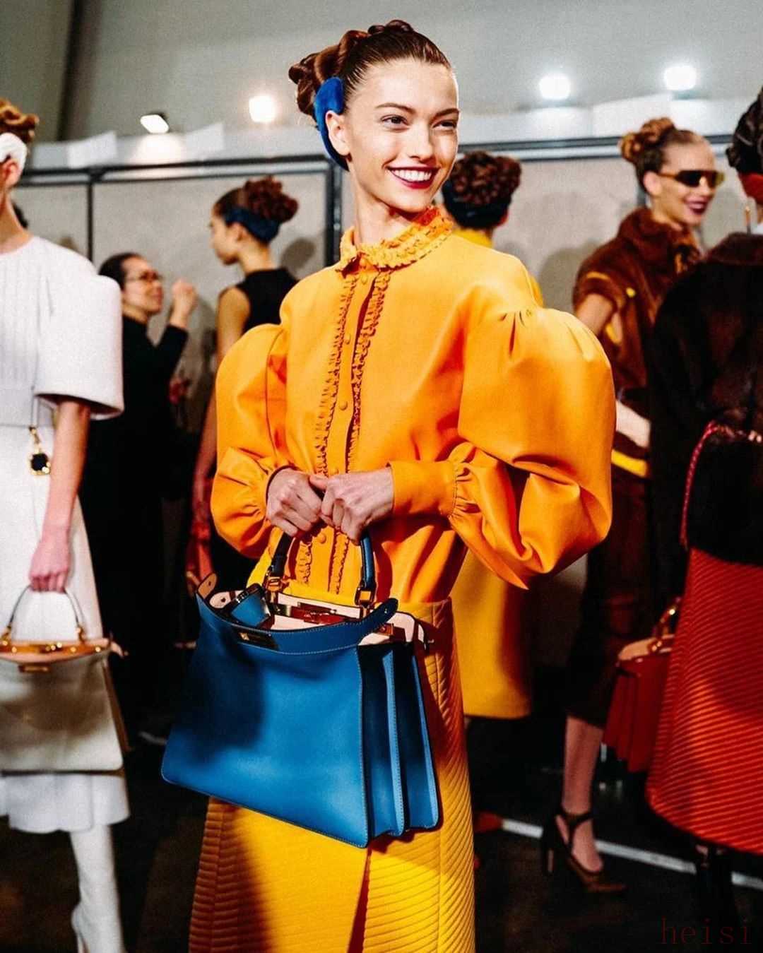 对于老佛爷留下的Peekaboo手袋更是FENDI无可替代的经典,Silvia Venturini在新一季为我们定制了全新的风琴轮廓,还有用三个尺寸,这一下够!装!了!新款Peekaboo依然为我们配备了“笑容”般的开口弧度,光滑皮革和珍稀皮革的可替换内袋清晰可见。