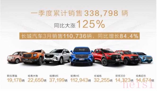 也就是说,长安UNI-K的订单量要是有一半的成交转换率,就算是成功的了。至于能不能成为像UNI-T那样月销上万的爆款,就要前期的口碑发酵了。2、长城汽车第一季度销量:33,8798辆今年第一季度,长城汽车的累计销量为338798辆,同比大涨125 %。需要注意的是,这份数据并没有区分商用车和乘用车,因为长城把皮卡也算进去,而按照国内车型的划分标准,皮卡是属于商用车。