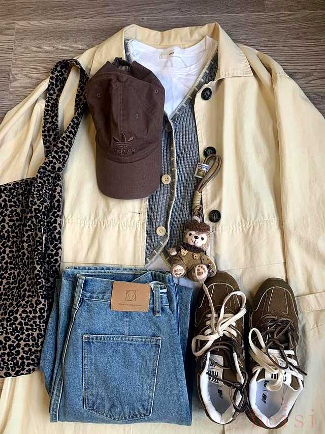 2. "叠穿 (外套):" 外搭一件"半束腰的豹纹连帽外套"。选择柔软的棉麻或混纺面料,长度在腰部或稍过腰部,可以束进内搭一部分,展现层次,也符合“轻运动风”和“松弛感”。束腰的设计能优化比例,增加“酷”感。