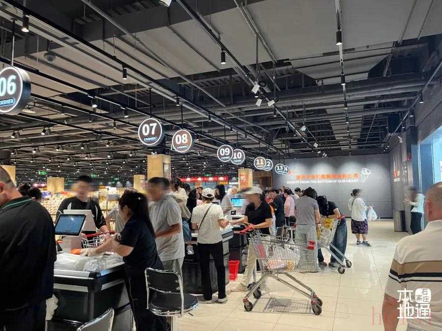 还设置了约17个自助结账通道、14个人工结账通道,结账区域分布合理,即使是开业高峰期,也不会显得拥挤。