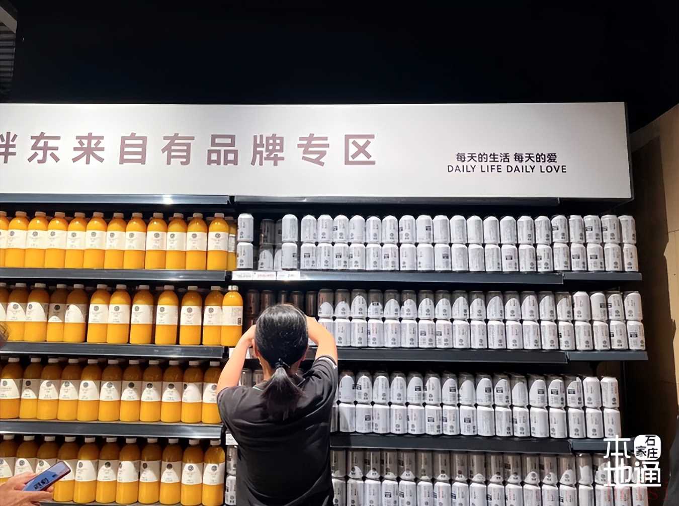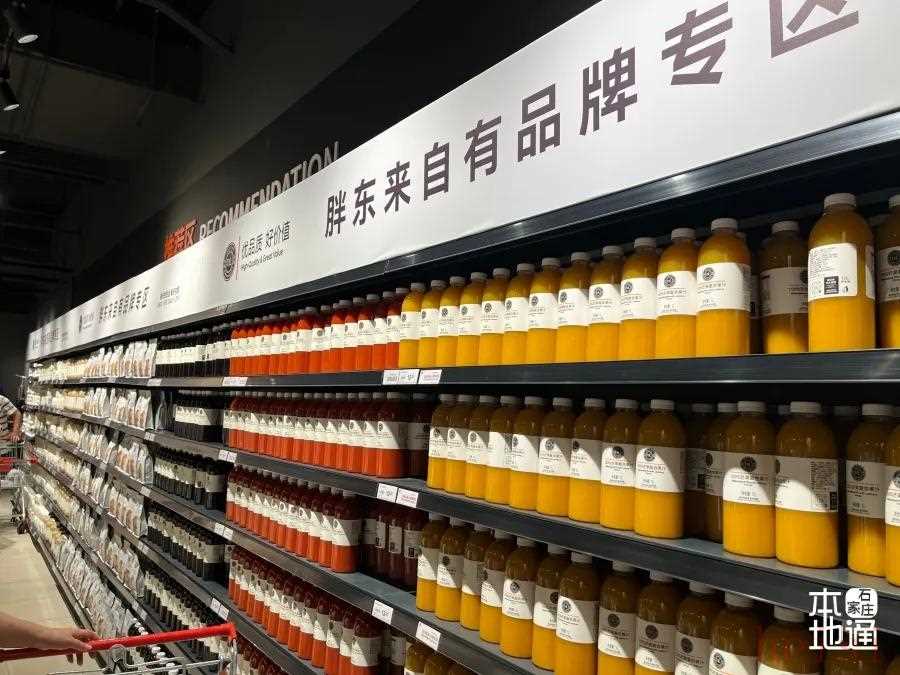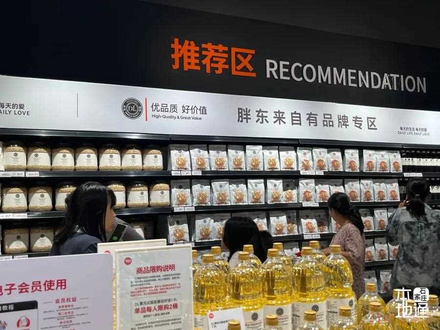 再往前走,就是专门的胖东来自有品牌专区。相比永辉石家庄万达店,这里的胖东来商品更多一些,现场有四五位店员随时补货,完全不用担心 “抢不到”。
