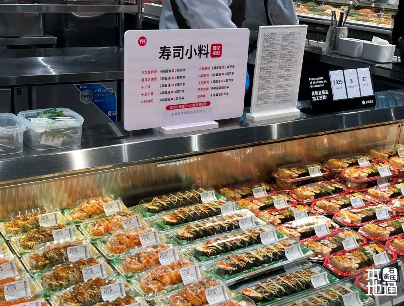 服务方面,更贴心了!部分货架不仅配备着手套、纸抽、放大镜,方便顾客取用;更在寿司等产品区域,还贴心标注了推荐搭配方案。