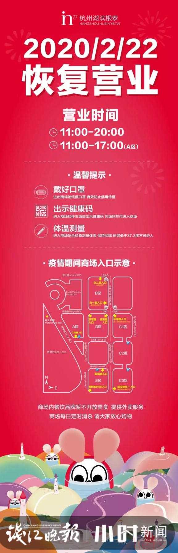 银泰in77今天(2月22日)恢复营业,开放全部5个区。