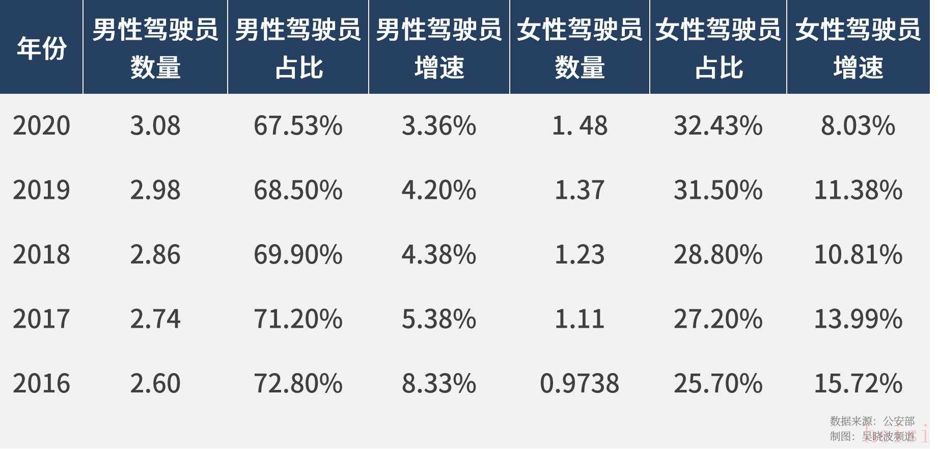 有趣的是,女性驾驶员的数量其实正在不断上升,且增速远远高于男性驾驶员的增速。根据2019—2020年女性驾驶员数量的增量推算,2020年新领证的2231万驾驶人,女性占比接近50%,她们是潜力巨大的潜在乘用车首购消费者。