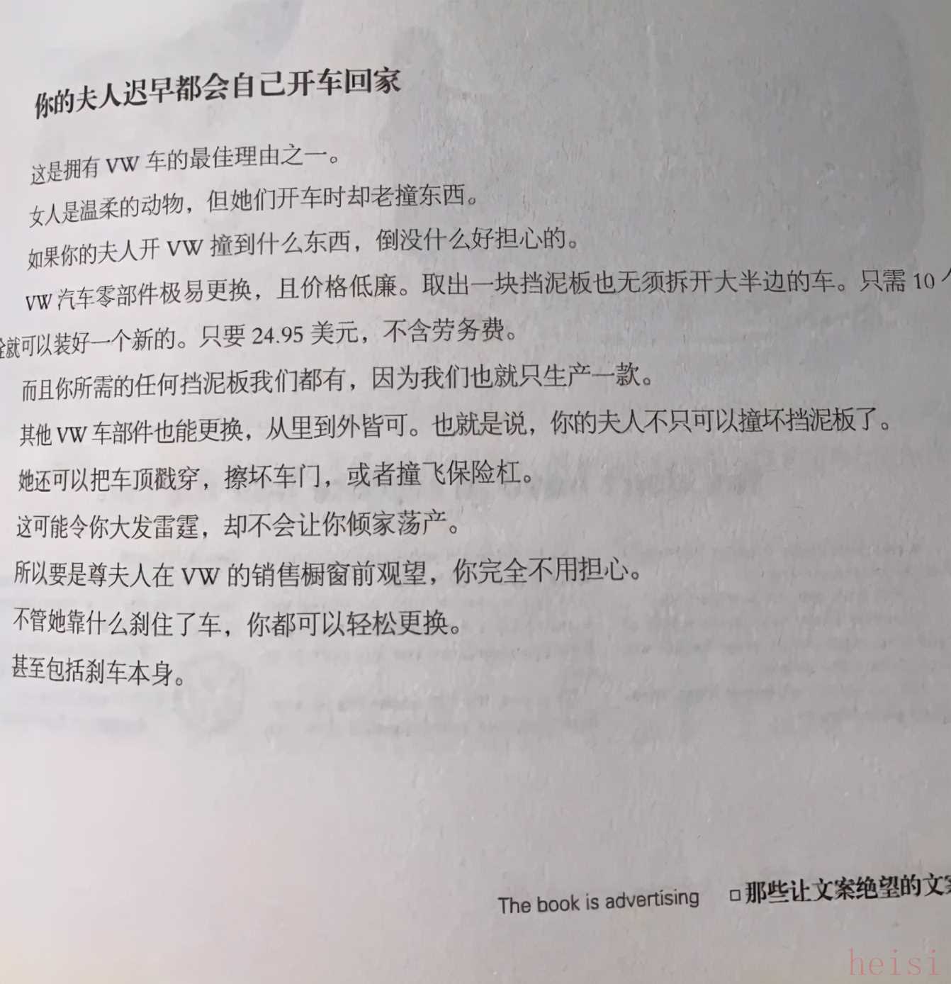 2016年,我买了一本关于广告文案的书,里面收录了许多经典的汽车广告长文案。但在翻开后,我惊讶于里面那些充满刻板印象的片段,比如这篇——《你的夫人迟早会自己开车回家》。