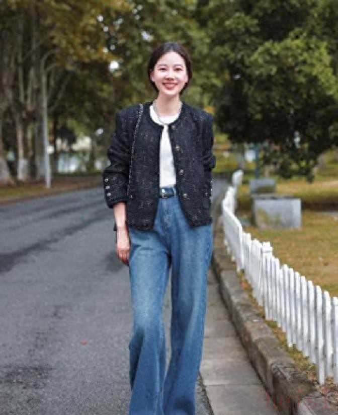 穿搭的核心并不是遮掩,而是创造视觉平衡。上半身做加法,下半身做减法是我反复强调的原则。上身可以用层次感、纹理或亮色吸引目光,下身则保持简洁。聪明的露肤同样重要,一点点领口或手腕的裸露,比全身覆盖更能制造轻盈感。日常通勤可以把宽松针织衫半塞进高腰直筒裤里,再配上一双小方跟鞋;周末出街可以选一条高腰喇叭裤搭配短夹克,腰线显得清晰,整体更有故事感。