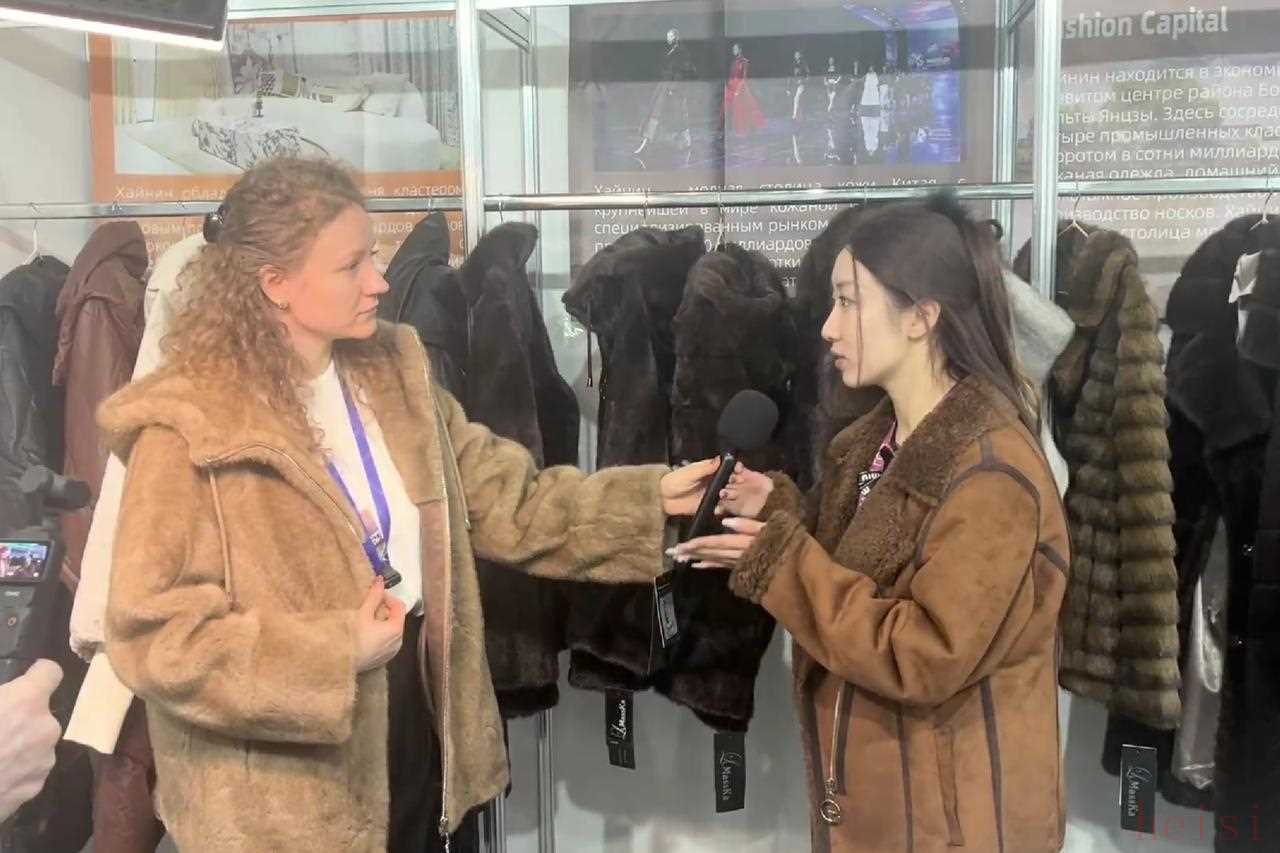 但机遇总是与挑战并存。马都慧在展会中发现,俄罗斯消费者对服装版型有特殊要求。“幸亏我们多年深耕俄罗斯市场,准备的样衣在袖子长短、衣服尺寸上都很适合当地人。”这种对细节的把握,让他们的仿真皮草大受欢迎。