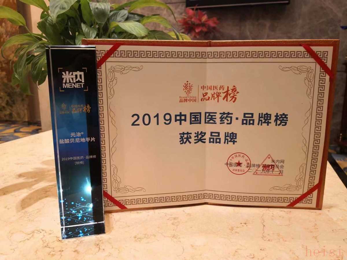 中关村科技旗下山东华素制药有限公司产品——元治®(盐酸贝尼地平),荣登2019“中国医药·品牌榜新型钙拮抗剂【锐榜】榜单。