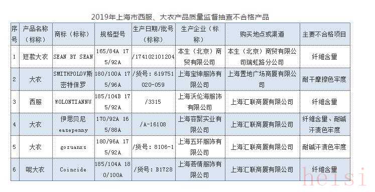 2020年3月30日,上海市市场监督管理局网站公布2019年上海市西服大衣质量监督抽查结果(第二批)。本次抽查了30批次产品,经检验,不合格6批次。
