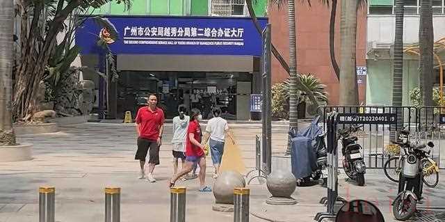 广州越秀分局的办事大厅,国庆人挤人,她排在普通窗口,红T恤、鸳鸯鞋,一只黄一只蓝,像把哪吒的风火轮拆下来踩在脚底。