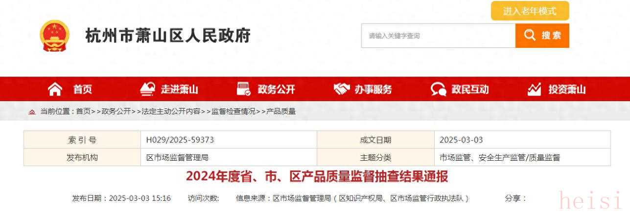 根据公开信息,浙江省杭州市萧山区市场监督管理局发布了《2024年度杭州市萧山区产品质量监督抽查结果》。