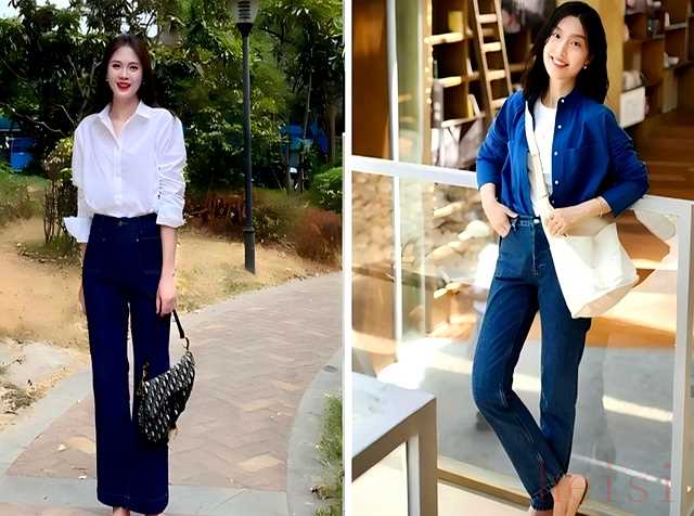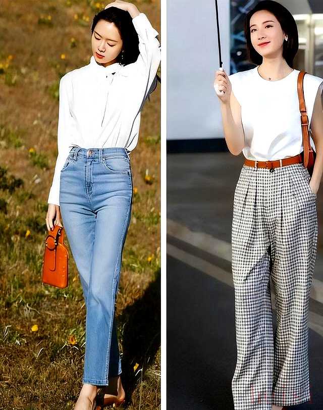 "优雅通勤:" 搭配高腰直筒裤或烟管裤,选择垂坠感好的面料,如真丝、雪纺或高支棉。内搭简约的衬衫或针织衫,外面可以加一件西装外套或质感好的开衫。颜色上,黑色、裸色、白色或经典的红色穆勒鞋是安全又高级的选择。