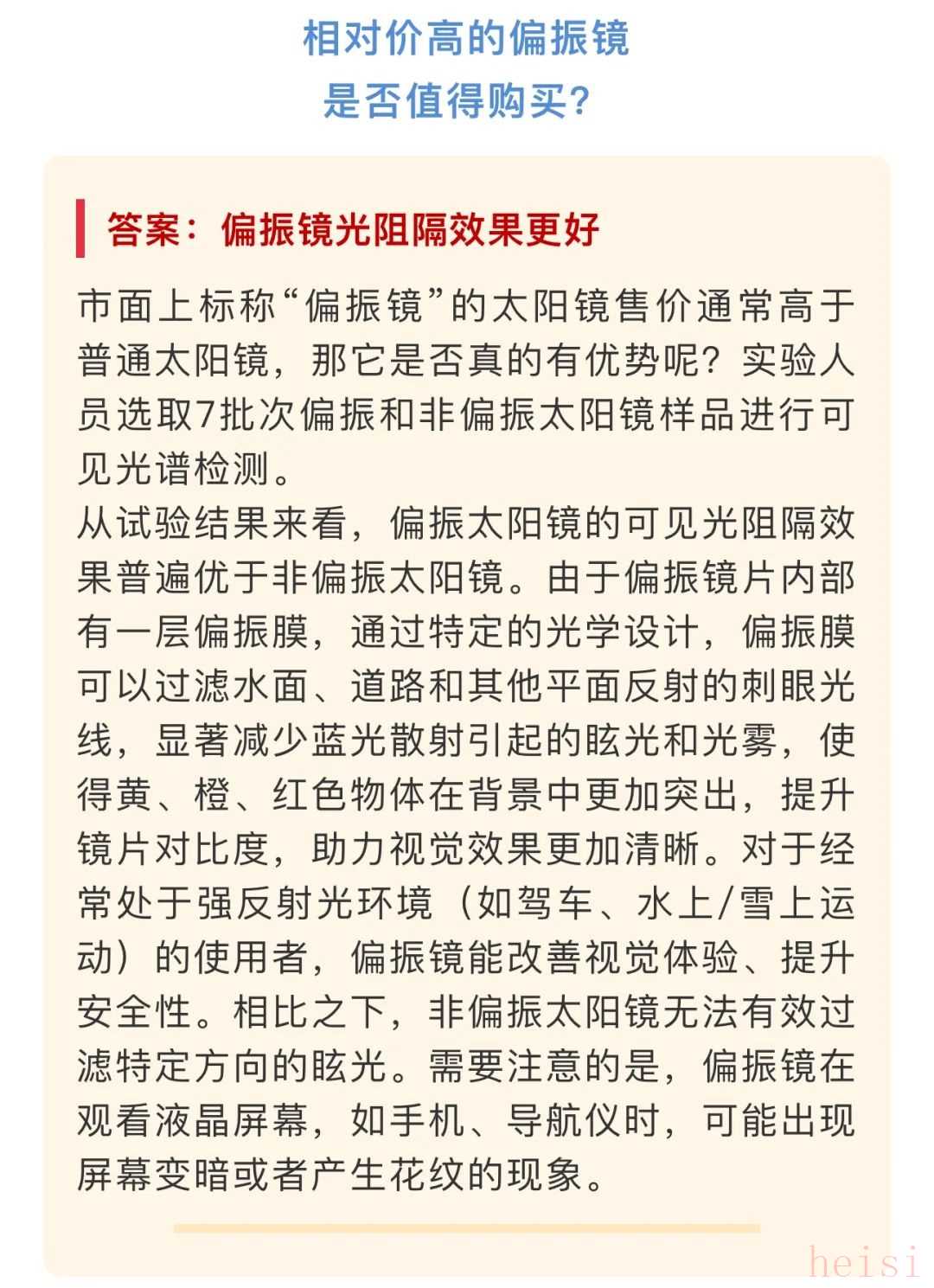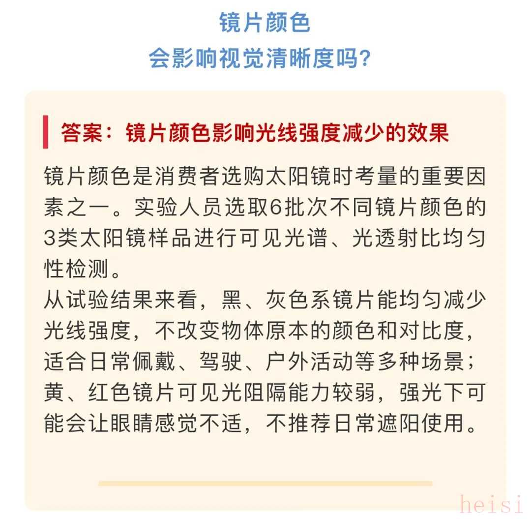 "测试方法(非专业,仅供参考):" 可以将太阳镜对着光源晃动,观察镜片边缘是否有彩色光晕(色散),有