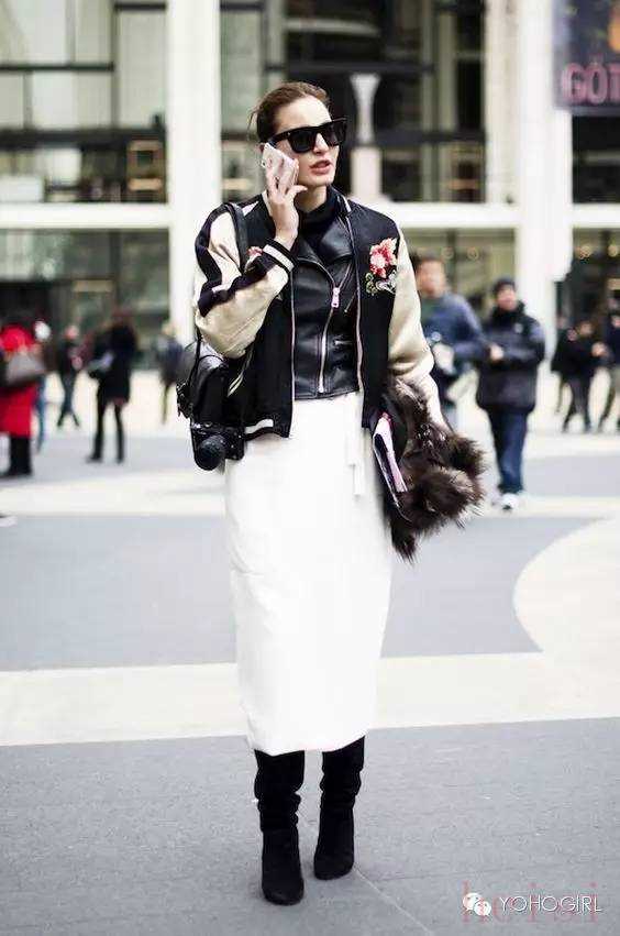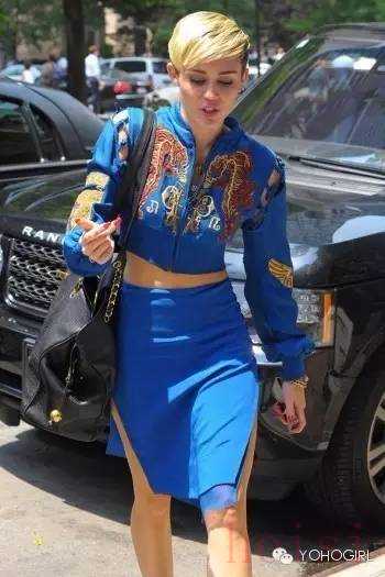 而T台外,小天后Rihanna,Miley Cyrus等也早已穿起,外加时刻走在潮流最前端的博主们的演绎,Souvenir Jacket时尚旋风刮起。