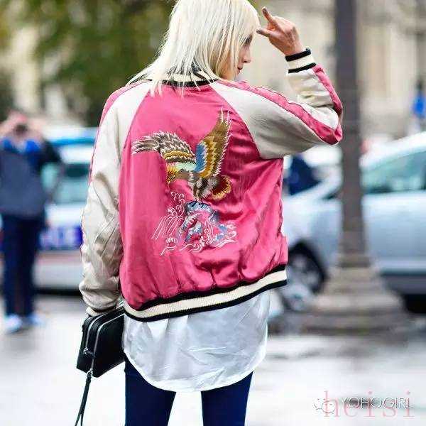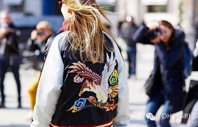 伦敦时装周上,上东区名媛Olivia Palermo一件日式刺绣棒球夹克外套(Baseball Jacket)亮相,获无数闪光灯追捕,而后更是引发购买热潮,致使其脱销,春季的潮人们纷纷向刺绣外套进军。