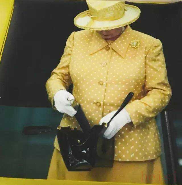 伊丽莎白二世的手袋都是劳纳品牌:矩形小包,配有方便放东西的米色内衬。她的手袋里有一些传统的物件:老花镜、手帕、薄荷糖、镜子、口红、钢笔和一个手袋挂钩。还有一些意想不到的东西:跟着女王的柯基犬的狗粮,报纸上剪下来的填字游戏,......还有一把小刀!另外,她总是随身携带自己的日记和小型相机,因为她喜欢“在访问总统或其他重要人物时照相”。不过,女王的手袋里没有手机、护照或驾照。她的手袋中还有一些富有感情的物品,比如她的孩子们送给她的吉祥物、家人照片以及菲利普亲王当作结婚礼物送给她的一个小金属化妆盒。