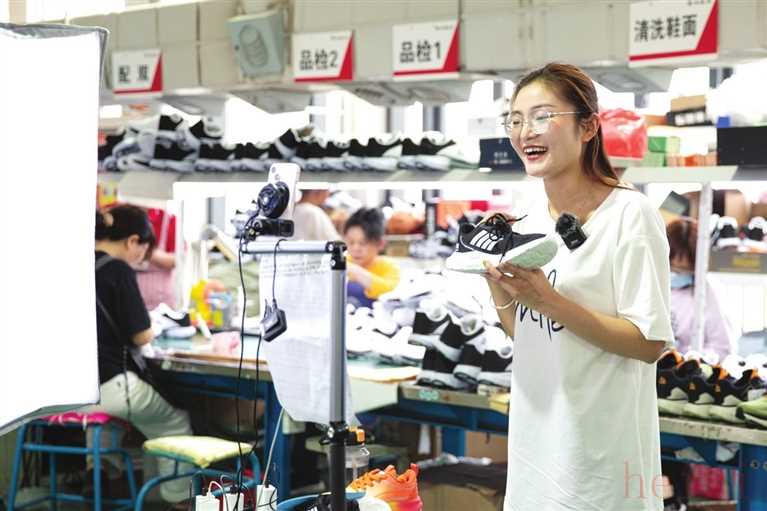 睢县高新技术产业开发区一鞋企内,工作人员正在进行电商直播。本文图片均由徐泽源 摄