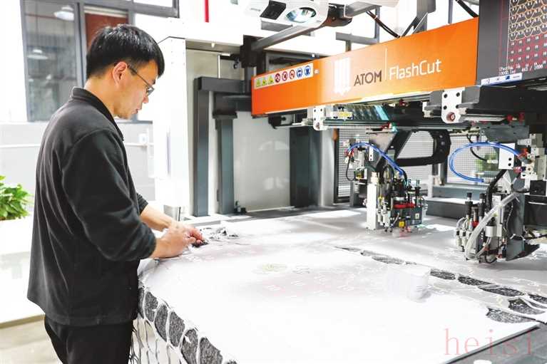 睢县高新技术产业开发区一制鞋企业生产车间内,工人正在操控数字化裁切设备,赶制鞋类订单。